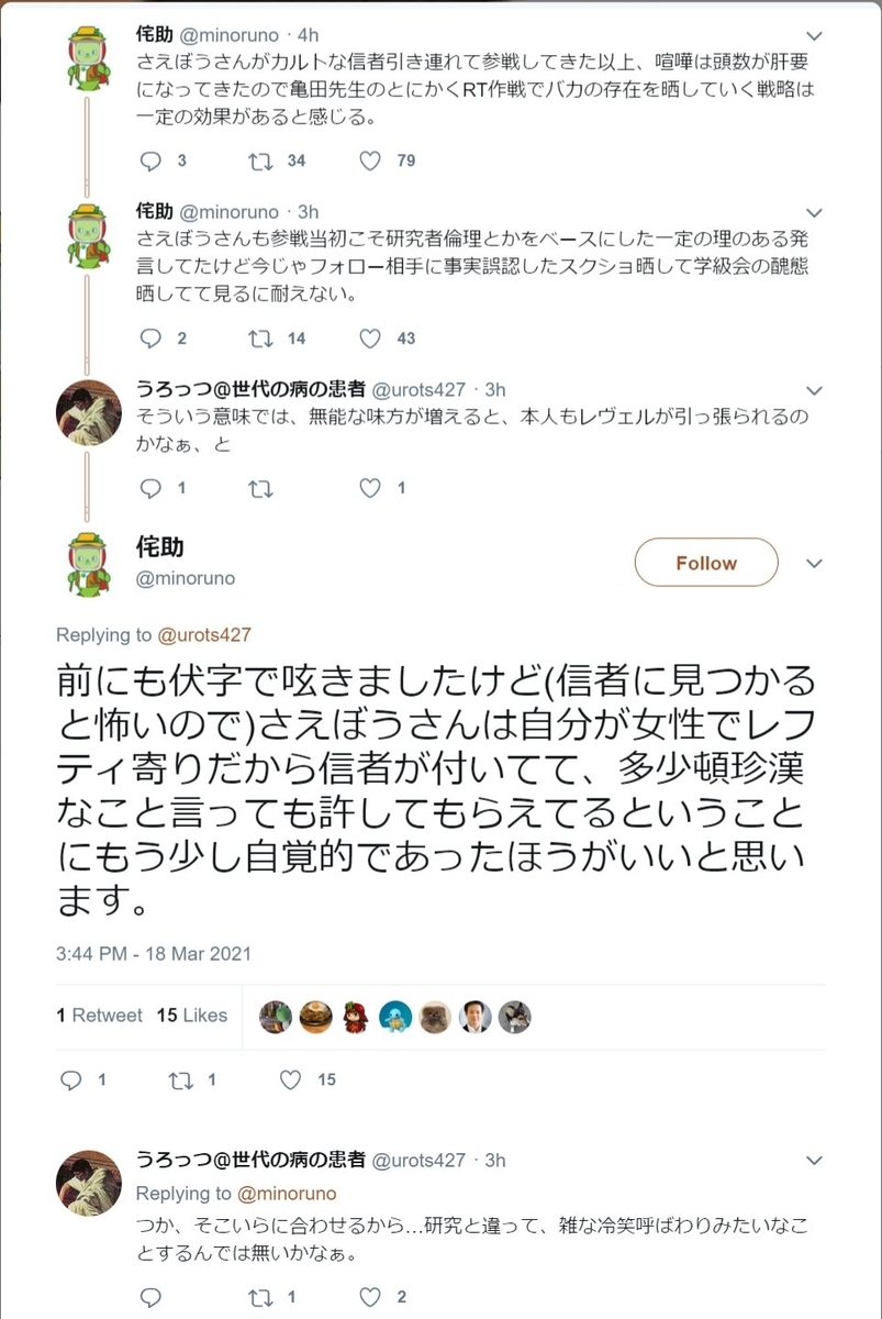 恐縮ながら、非礼を百も承知で……自称「ネット保守」「新保守主義者」「ネット右翼の代表格」のネット論客・HN【はむはむ】として「フェミニストどもを土下座させて謝らせた!」などと公言し、呉座氏に何らかの影響を及ぼしてしまった可能性がある亀田センセイにも、ご感想を伺いたいものです。