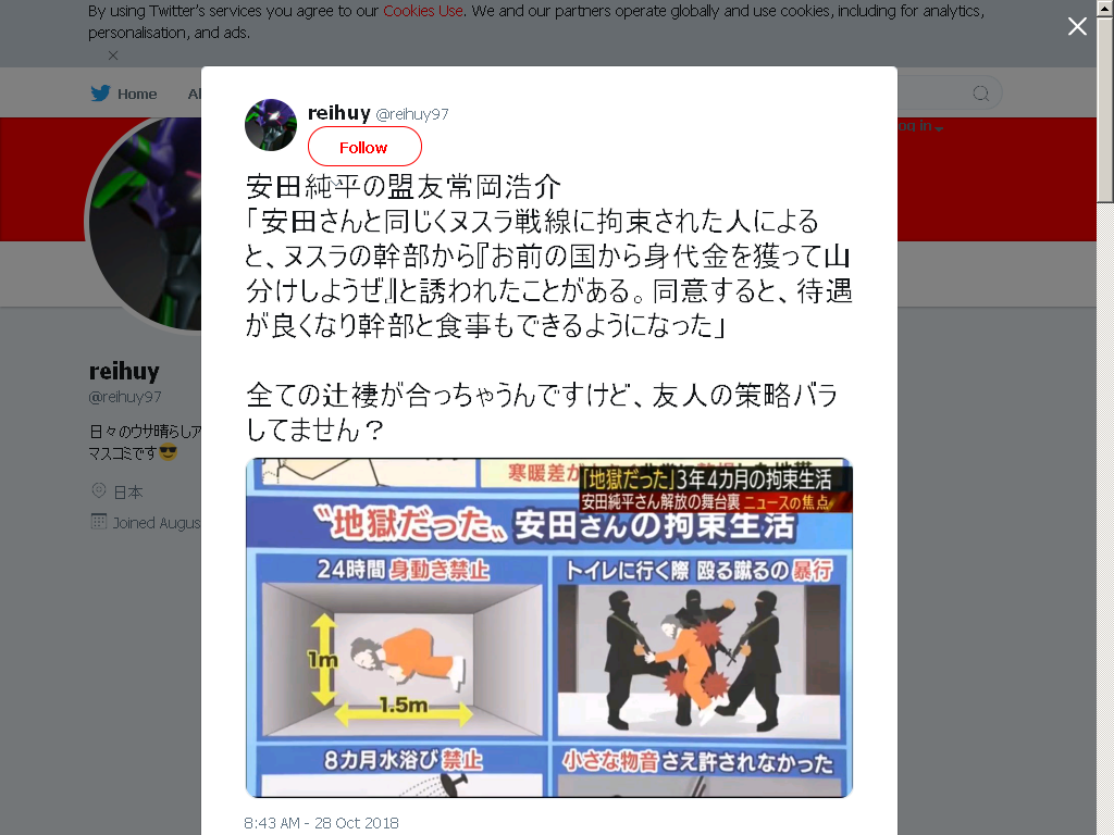 恐縮ながら、安田純平氏の事件で、このようなツイートをしていた歴史学者・呉座勇一氏と、呉座氏のツイートに「いいね!」をしていたご同業の平山優氏は、今こそ説明責任を果たすべきだと考えられます。#呉座勇一 #平山優