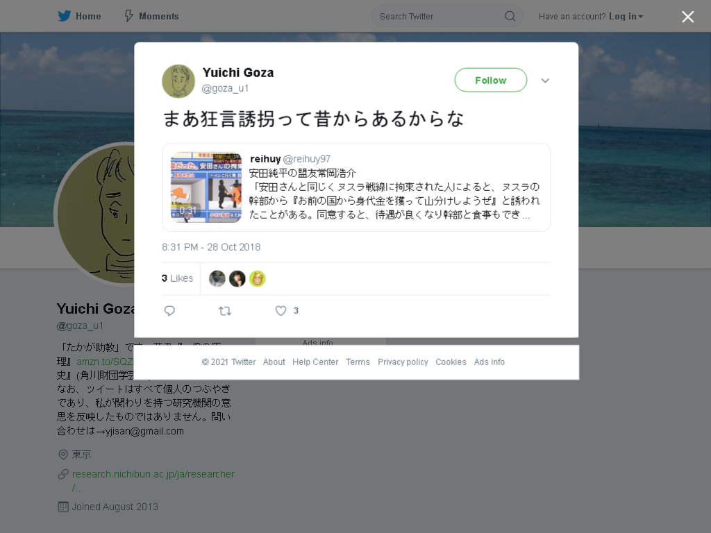 恐縮ながら、呉座氏が本邦を代表する歴史学者ならば……いい加減、安田純平氏の事件が「狂言誘拐」だとする客観的な根拠、エビデンス等を明示なさるべきかと存じ上げます。
