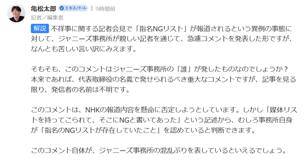 【独自】流出していたジャニーズ会見「“氏名”NGリスト」[追記あり](松谷創一郎)https://t.co/G5EYDGml2O