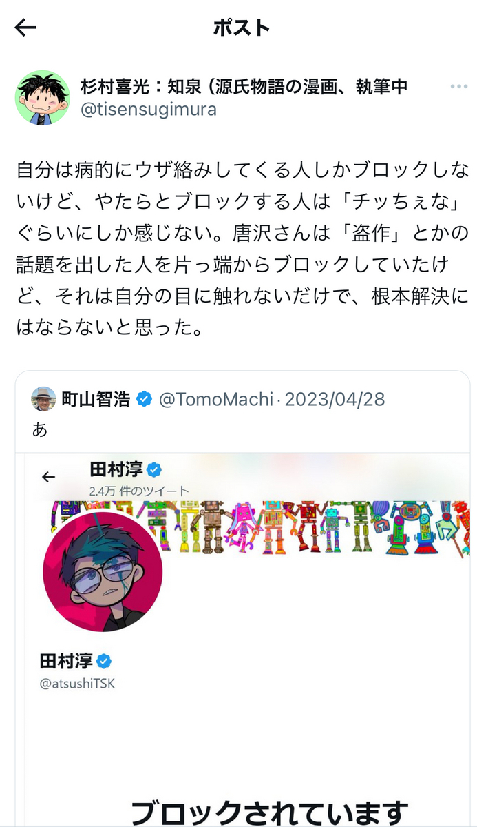そもそも、自分を「デムパ」呼ばわりしてくる垢にも、「オープンレターまで~キャンセル失敗」云々のポストに突っ込みを入れたところ、これまた反射的にブロックされた経緯があります。