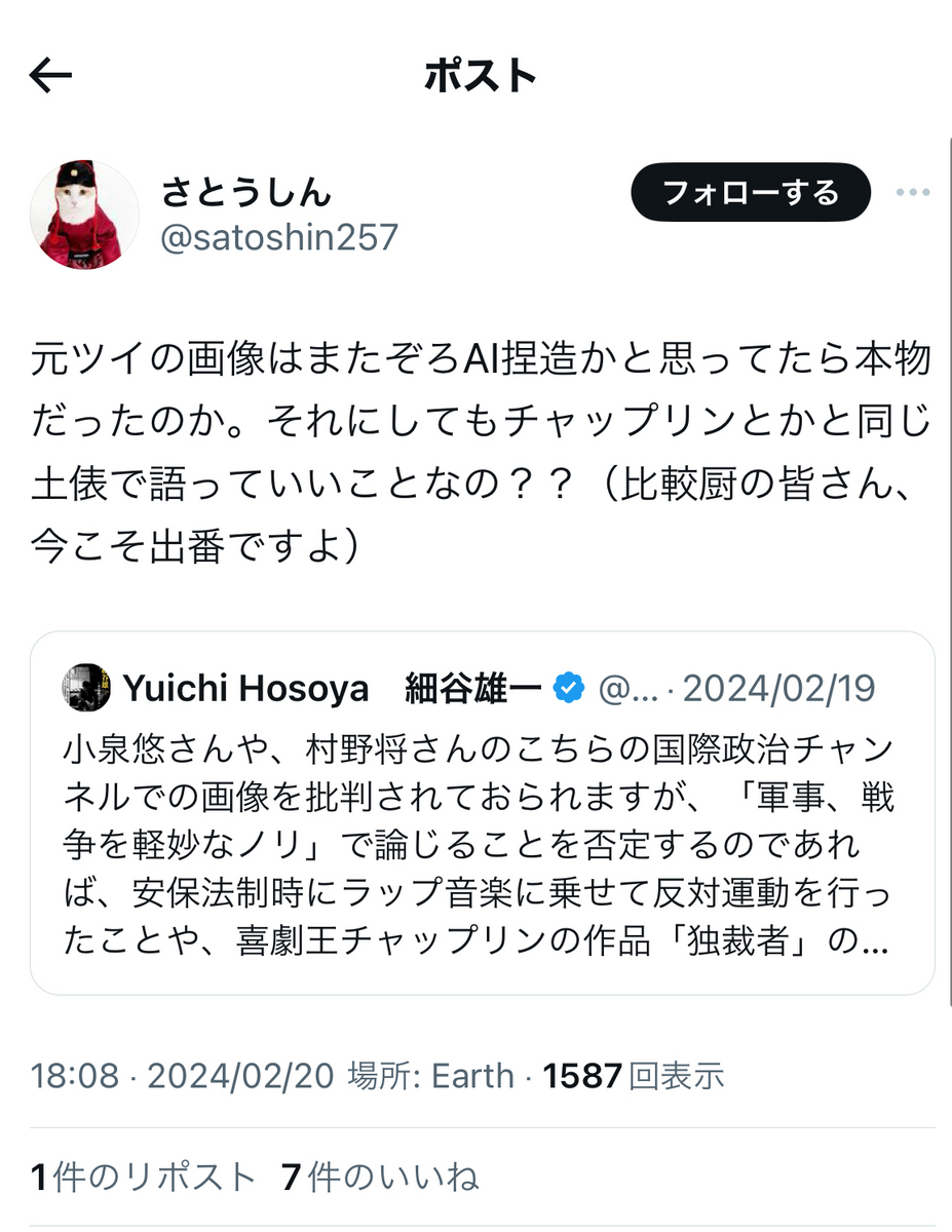 ※以下のポストなどは、ご参考なまでに掲載したものであり、自分はこれらのご見解に賛同している訳ではありません。宜しくお願い致します。