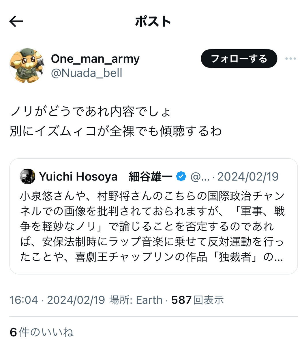 その親露派(?)ぶりから、敬遠されているらしい『一水会』の公式垢からも、ぐうの音が出ないド正論で論難されている飯山陽氏でした。