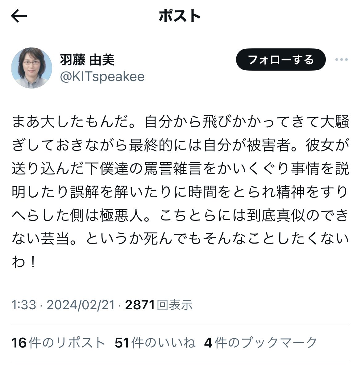 翻って、羽藤氏ご本人の真摯かつ毅然とした姿勢には、頭が下がる想いです。