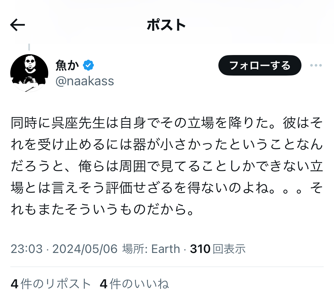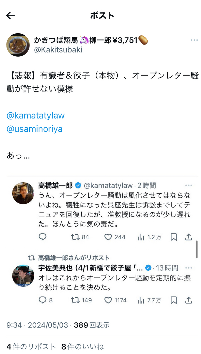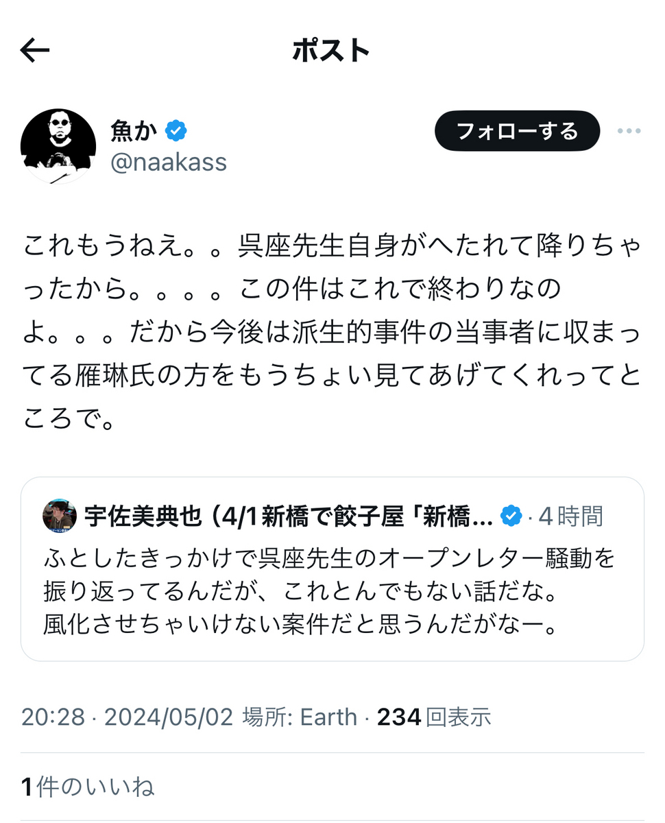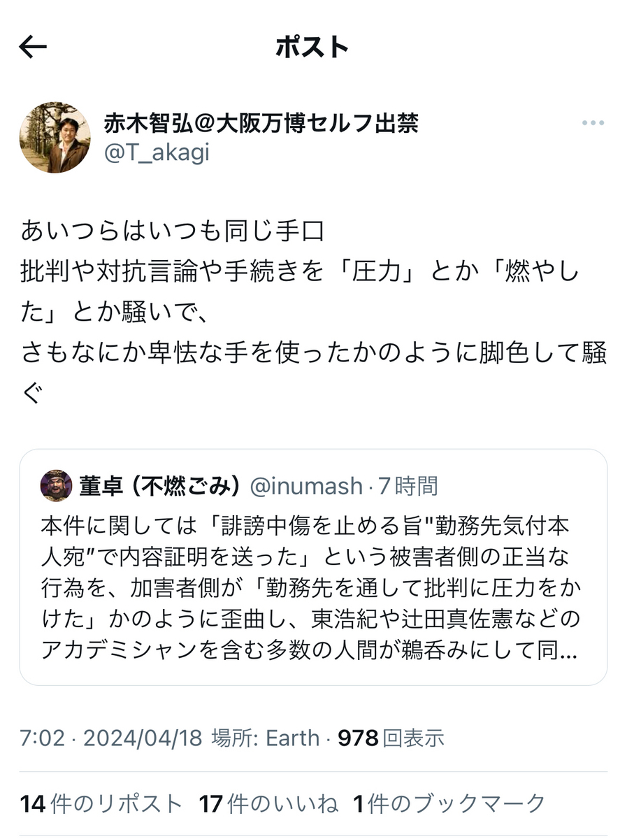というか、恐縮ながら、これまでの反オープンレター騒動での言動を「無かったこと」にして、今更、大上段から正論ぶったところで、