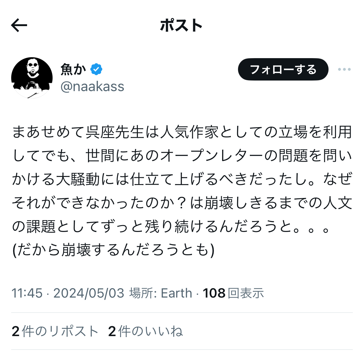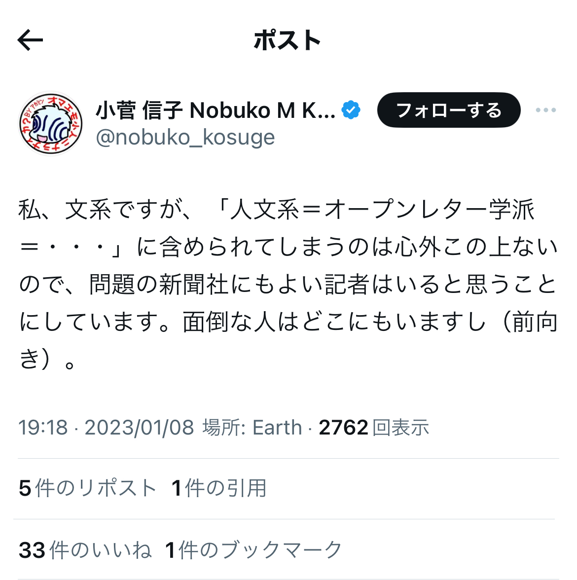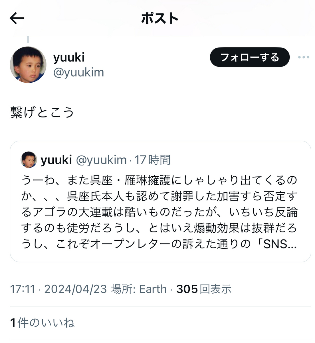 というか、恐縮ながら、これまでの反オープンレター騒動での言動を「無かったこと」にして、今更、大上段から正論ぶったところで、
