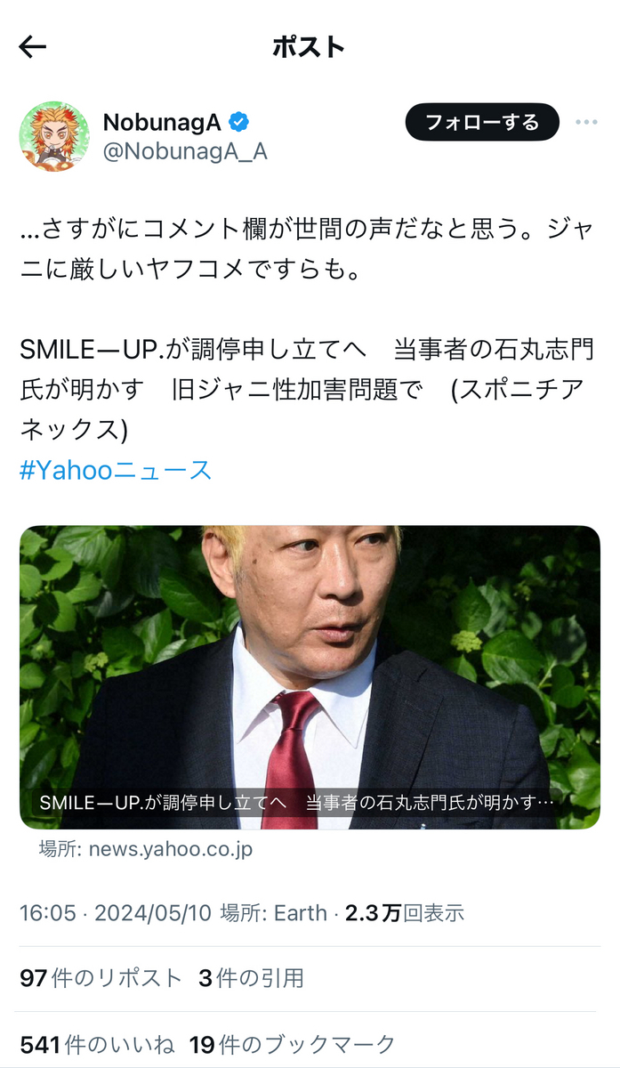 ・ジャニーズ問題が依然として燻り続ける中……「戦う歴史学者」平山優氏の薫陶を受けているらしい「NobunagA」こと炎上柱が、またまたセカンドレイプまがいの言説を振りまいているようです。