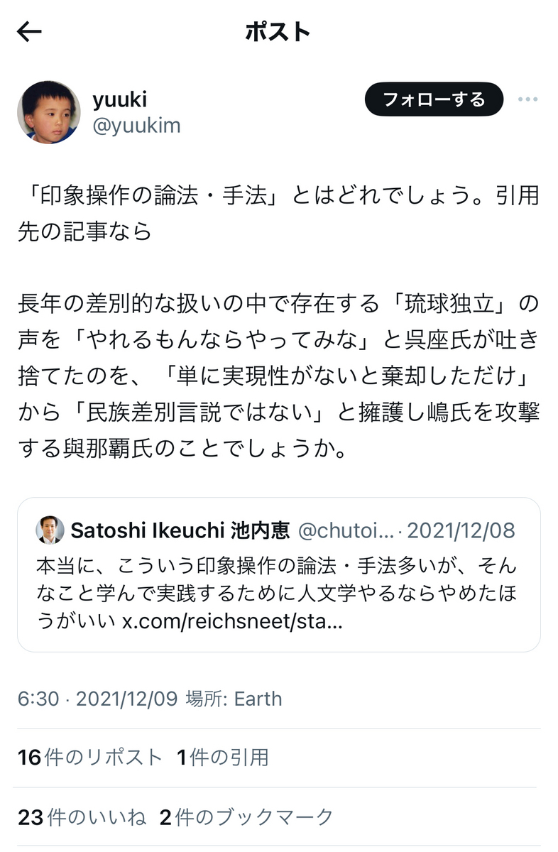 yuukiさんも、やはり、池内恵氏に「権威主義」じみた匂いを敏感に感じ取っているようですが……自分が当ブログにて、池内氏には、反権威を標榜する権威主義者としての傾向があると指摘したこととも、いみじくも一致している部分はあるかと思います。