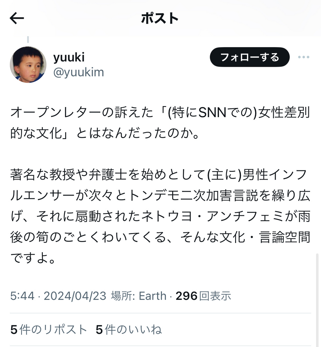 「オープンレターの訴えた「(特にSNSでの)女性差別的な文化」とは、何だったのか。」