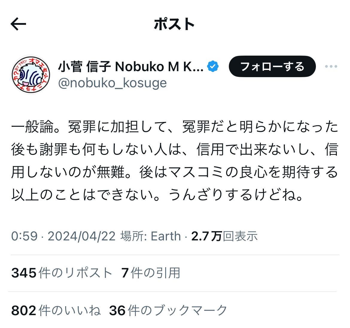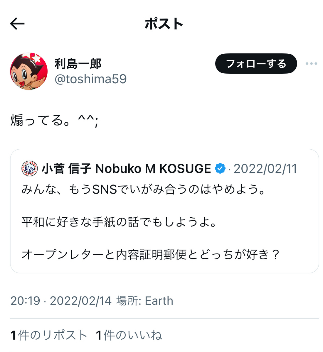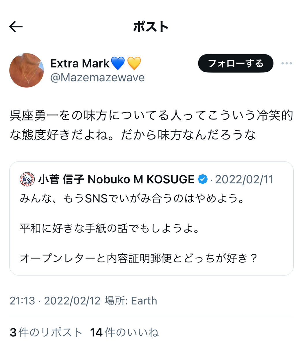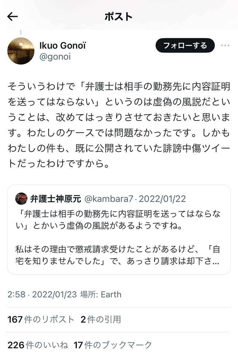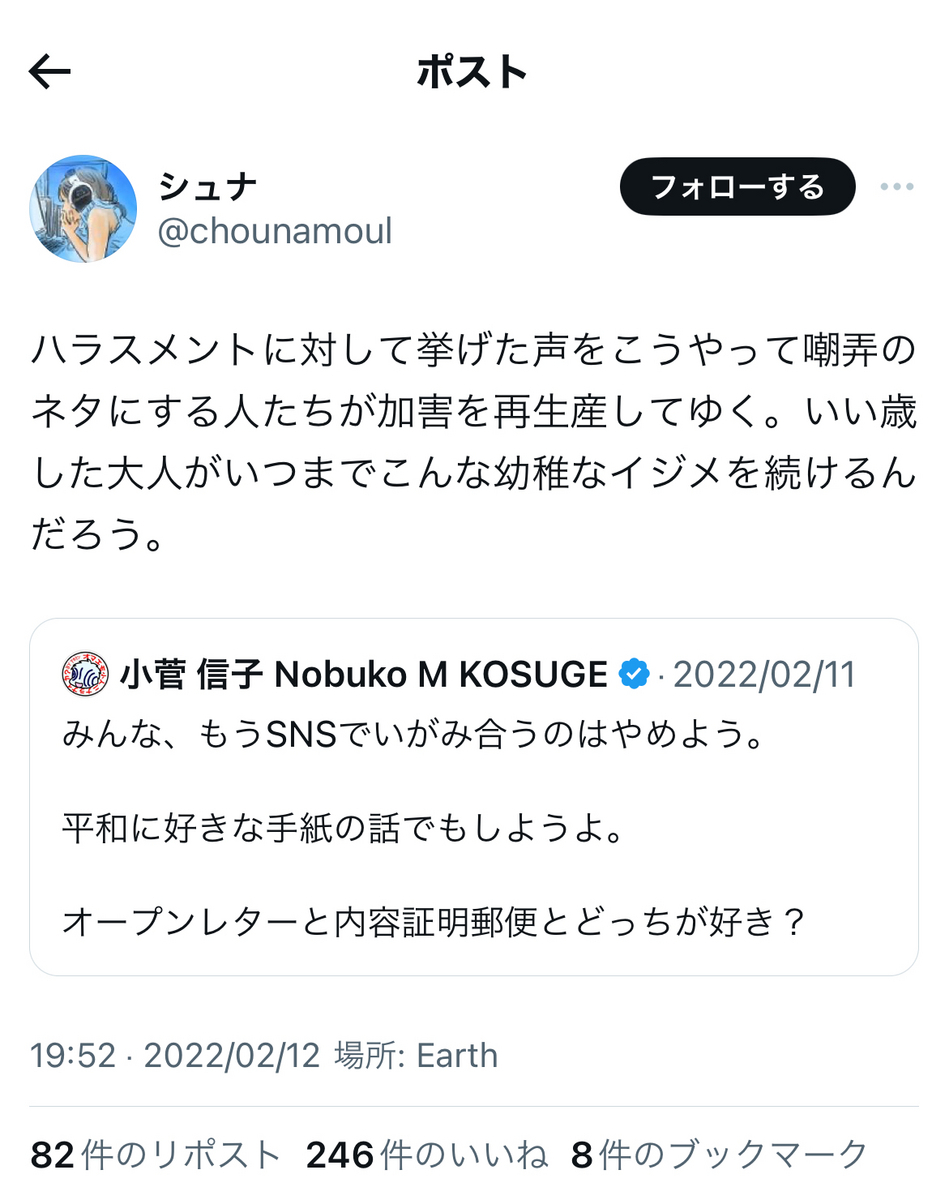 というか、上記でもリプライで、小菅氏は事あるごとに、「実質敗訴」の件を突っ込まれまくっていますが。