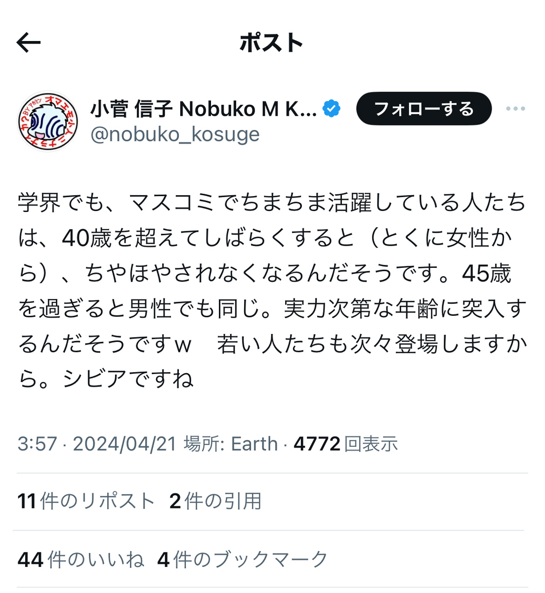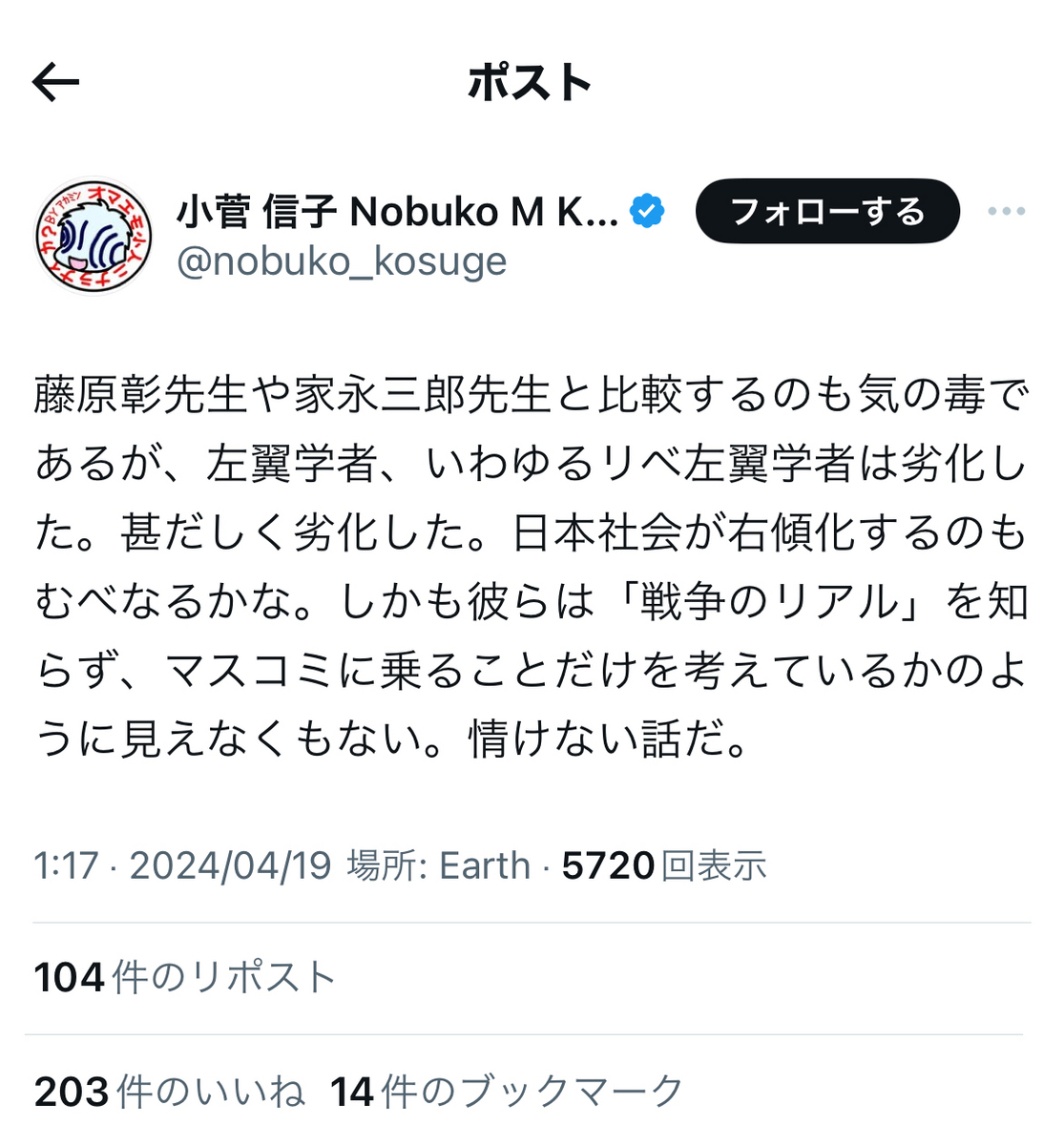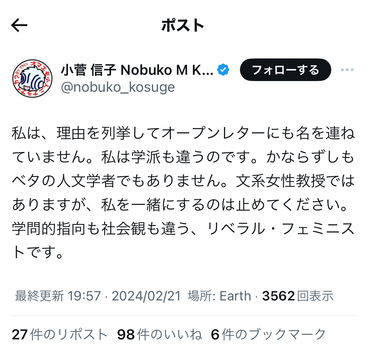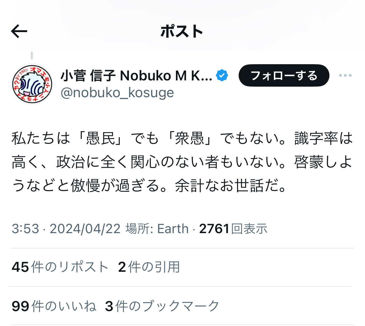 ええ!?恐縮ながら、小菅氏って……リベラルはおろか、フェミニストを自認していたとは、知りませんでした。