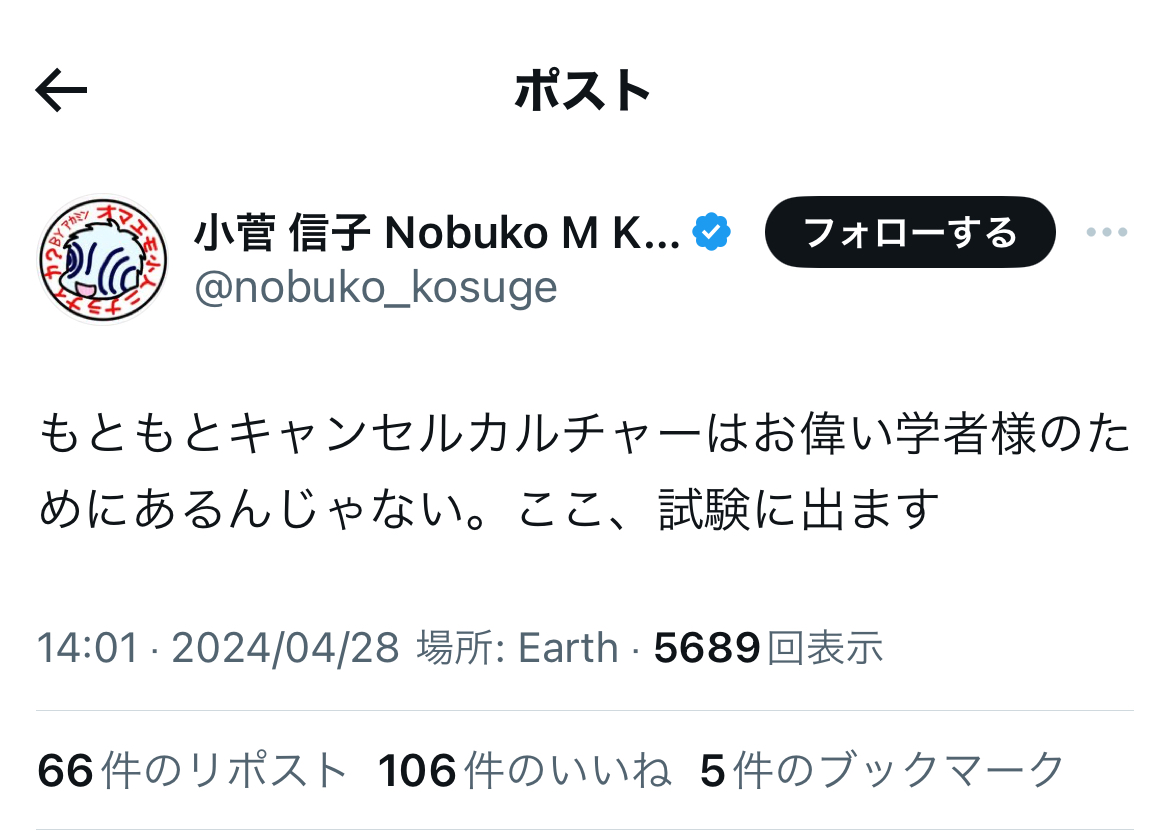 「危機感を持っているからこそ、「キャンセルカルチャーを取り戻す」などというキャッチフレーズが流行るのです、(原文ママ)」