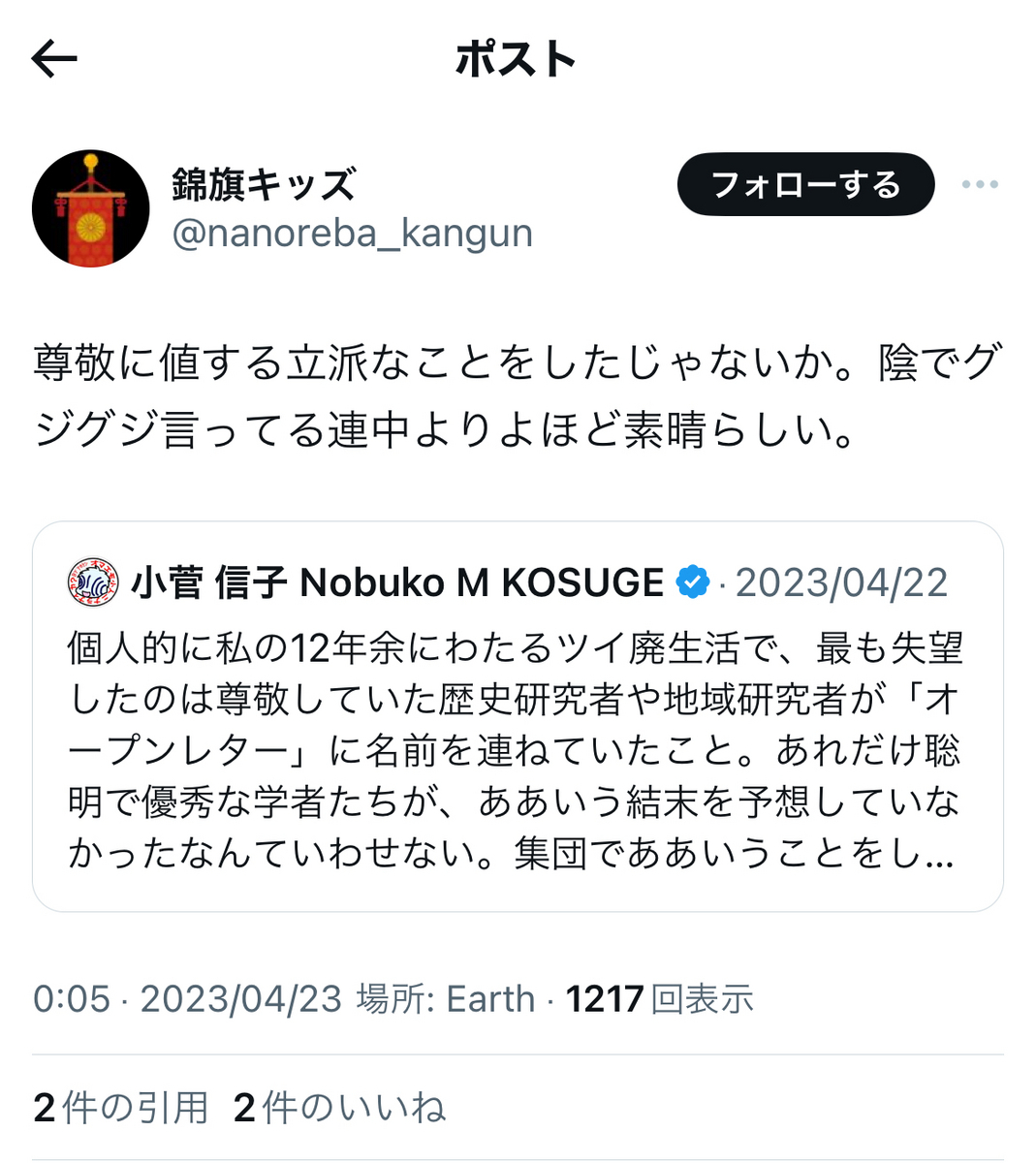 「戦う歴史学者」平山優氏のお気に入りらしい、炎上柱は……またしても、石丸志門さんらジャニー喜多川の性加害事件の被害者への誹謗中傷に、血道を上げておりました。