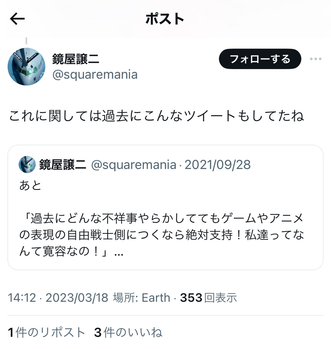 (前回のエントリーからの続き)伊藤剛・おぎの稔両氏らは、反オープンレター騒動での切実な反省も教訓も無いらしく、寧ろ同騒動での「成功体験」等も踏まえてでしょうか。