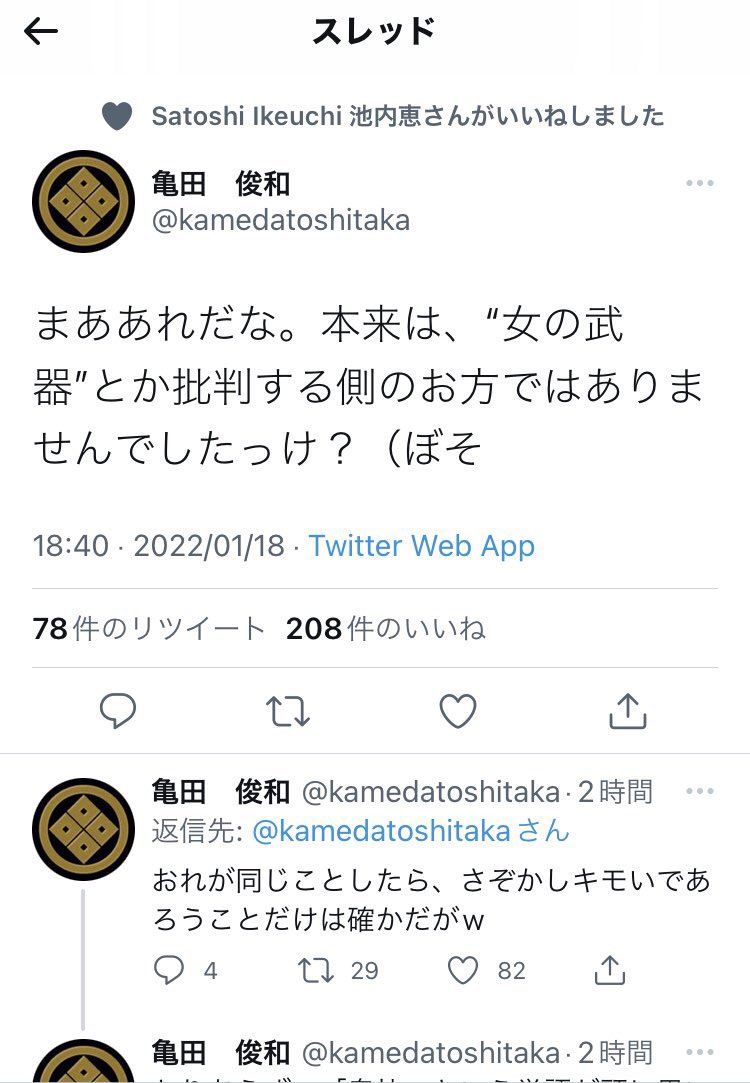 ……上記の鈴木氏のポストに対し、現在に至るまで、亀田センセイが諫言ないし苦言を呈したという話は、寡聞にして存じません。