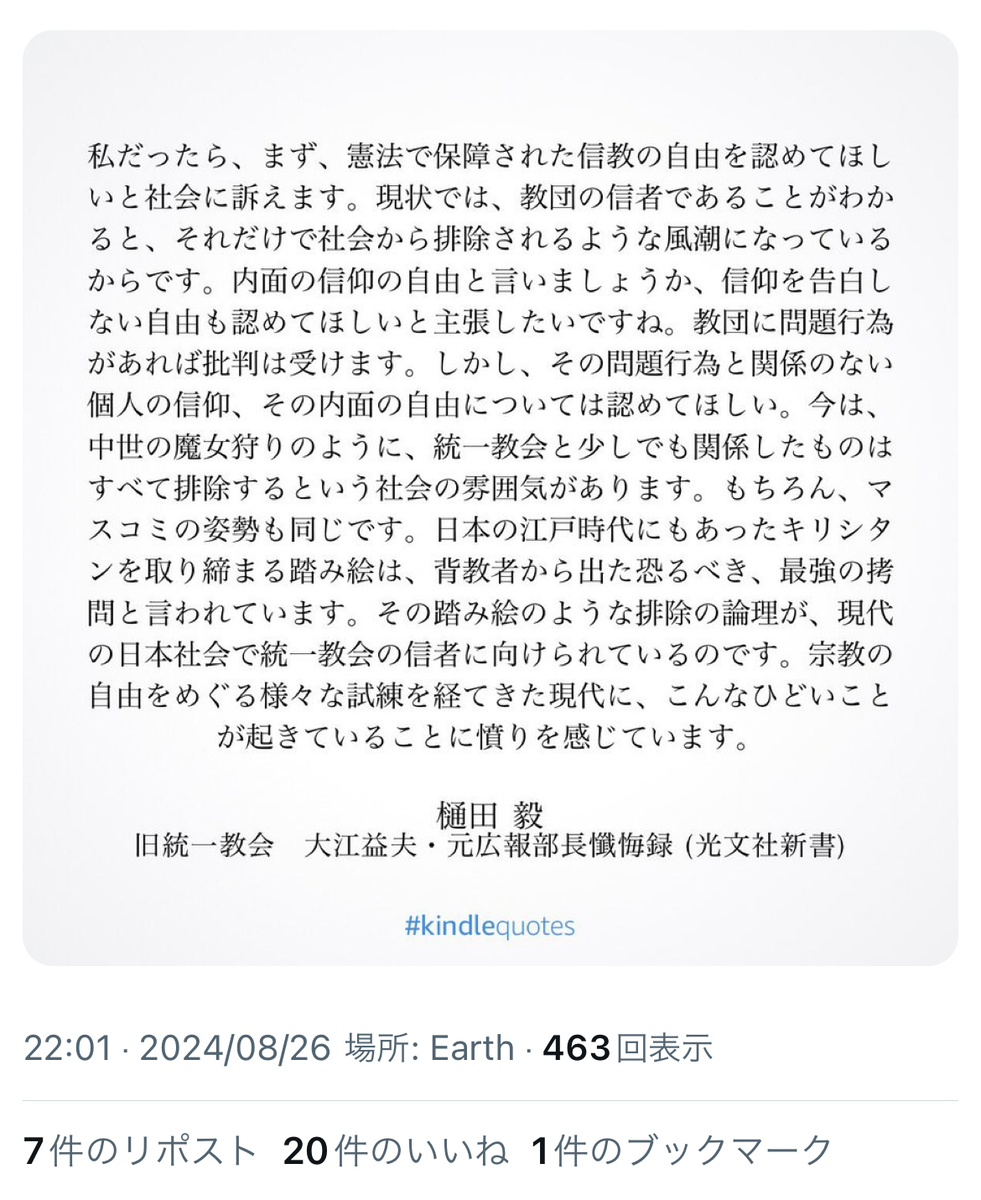 などと、カルトや反社への危機意識から統一協会問題に拘る、又は拘るざるを得ない左派・リベラル派等に批判的らしいですが……恐縮ながら、やはり、こうした社会認識の狭さもまた「呉座神聖十字軍」のアカデミシャンたちの「限界」かと考えられます。
