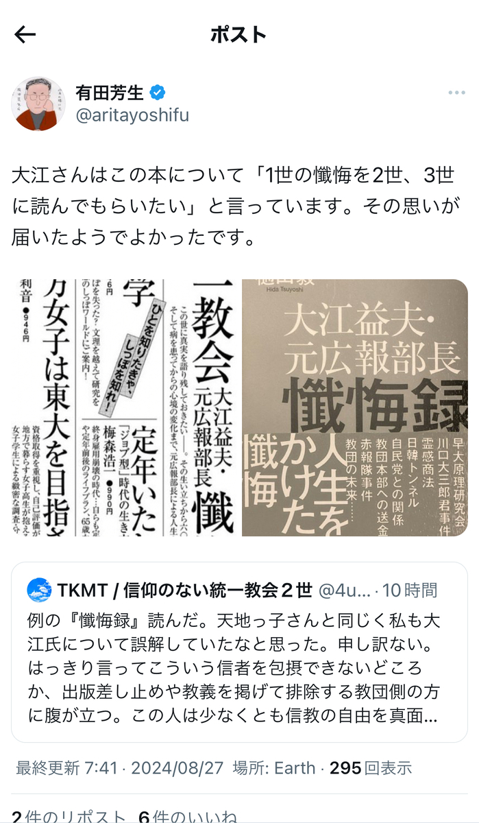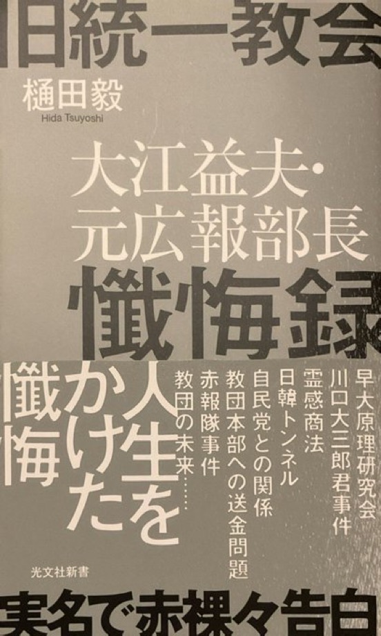 ・この程、統一協会の最古参幹部でもある大江益夫氏が、教団の創成期から現在に至るまで、自身の半生と共に回顧し、そして生々しく告発した『旧統一教会 大江益夫・元広報部長懺悔録』(光文社新書)を読破しましたが……これがまた、様々な意味で凄まじい衝撃の内容でした。
