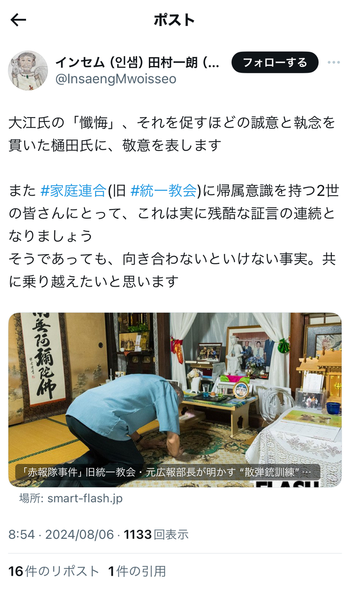 真意は不明ですが、あの事件以来、反オープンレターズ「呉座神聖十字軍」内でも、反・反統一協会の論陣を張っておられる伊藤剛氏は、