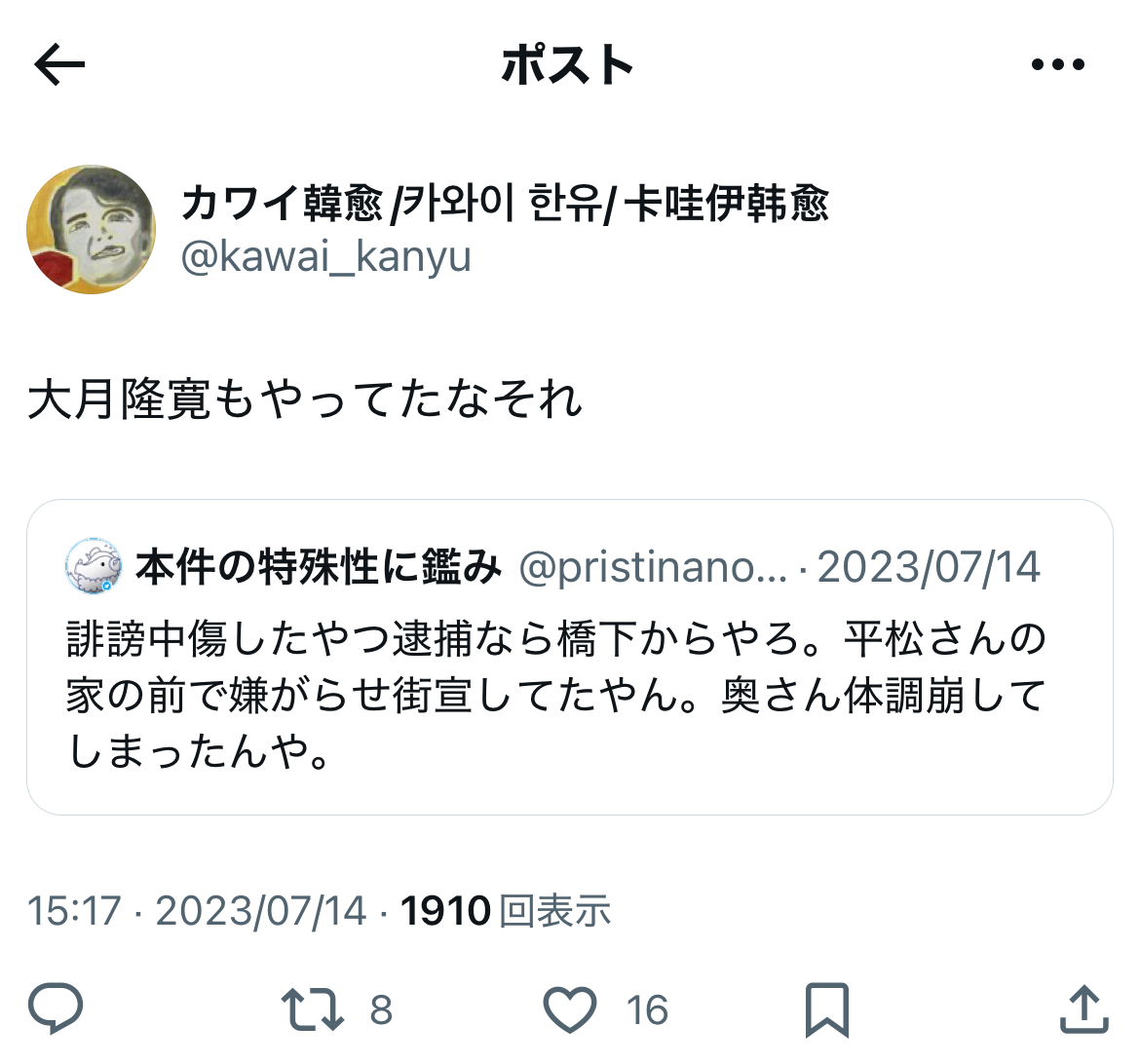 尚、このポストは投稿直後から大炎上し、後日、高橋弁護士ご本人によって、こっそり削除された模様です。