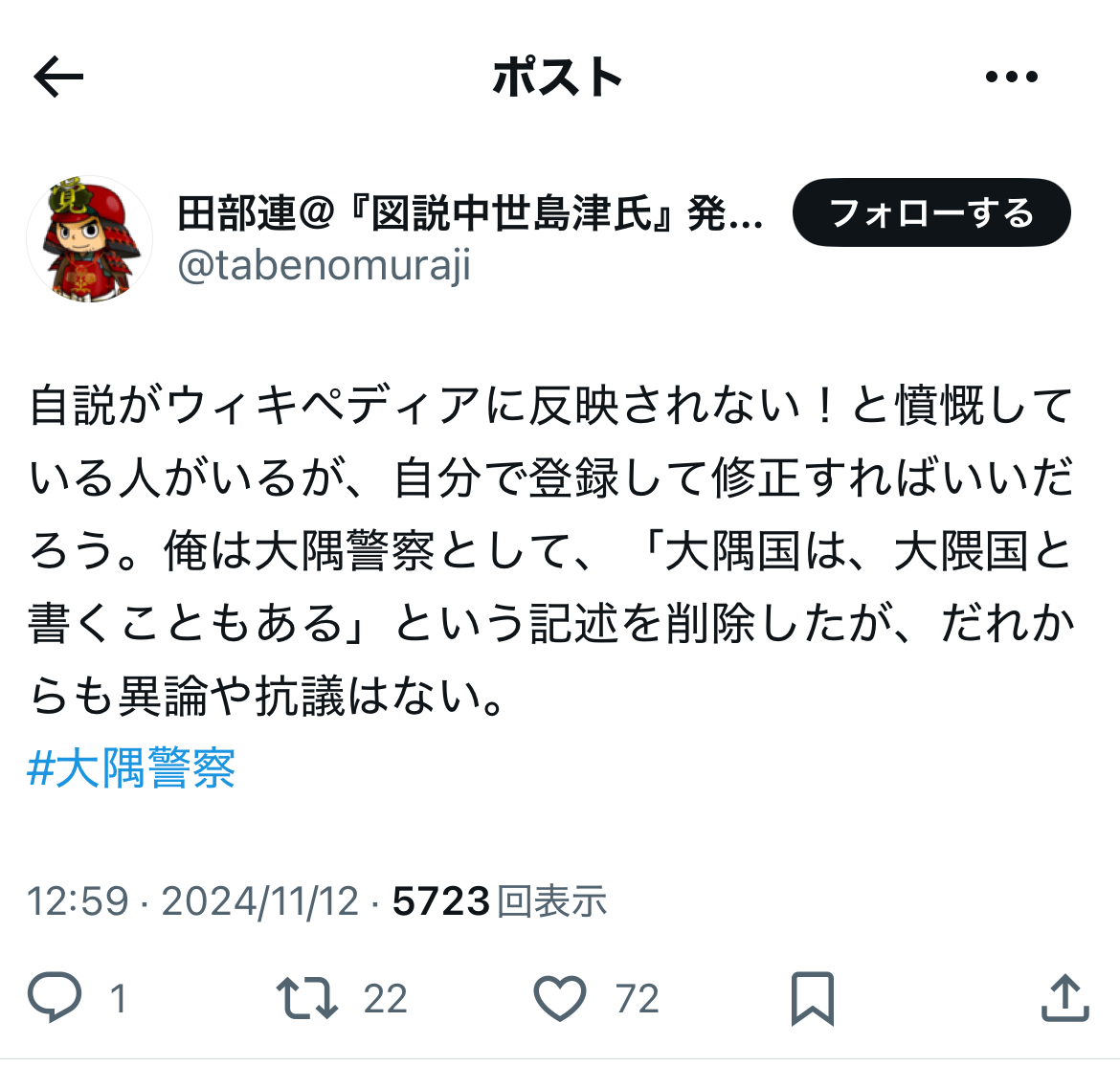 上記のいずれも、呉座氏ご本人によって、後日、こっそり削除された模様です。