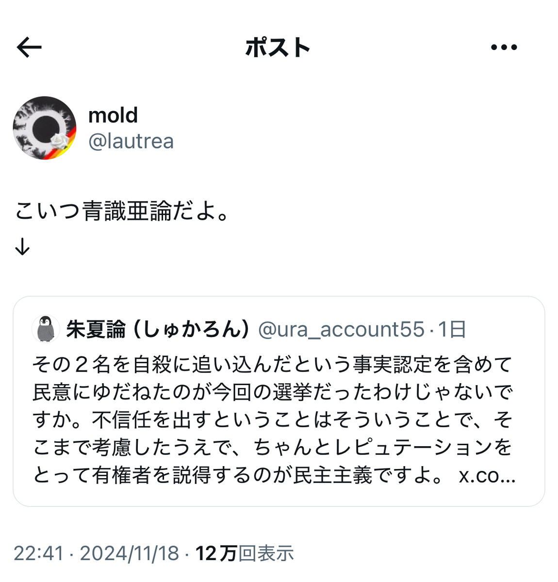 ※以下のポストのスクショなどは、ご参考なまでに掲載したものであり、自分はこれらのご見解に賛同している訳ではありません。宜しくお願い致します。