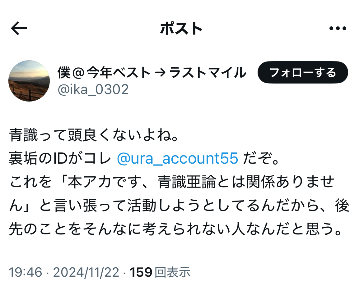 ・少し前、当ブログでも取り上げた亀田センセイの母校・京都大学の後輩格にして、ネット論客の雄・HN【青識亜論】氏の別垢疑惑の続報です。