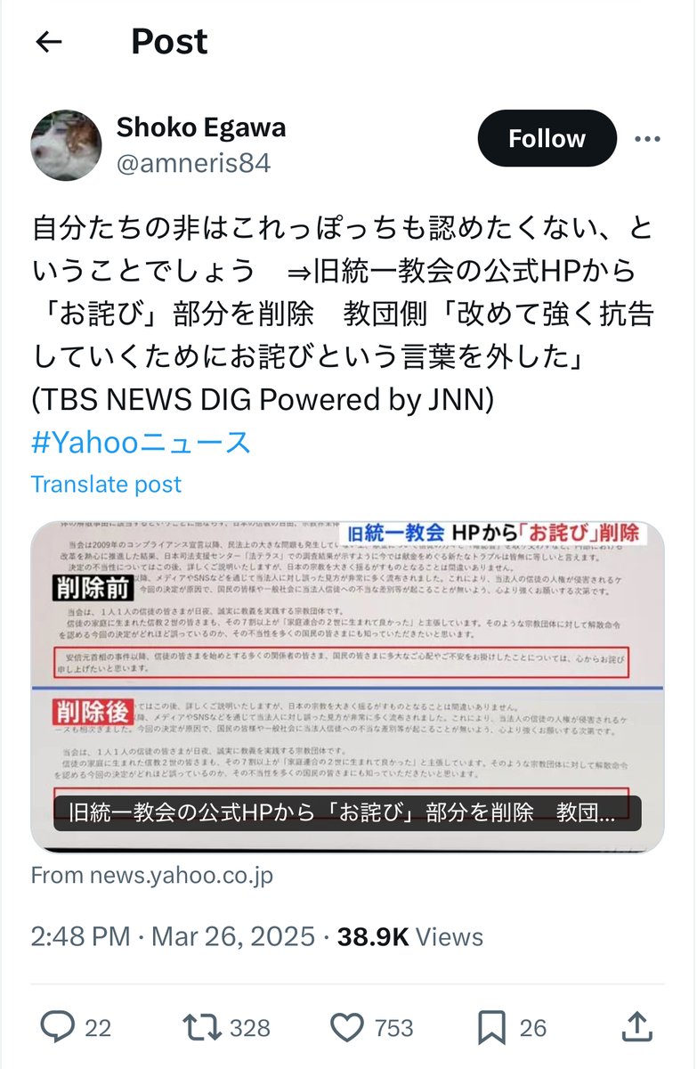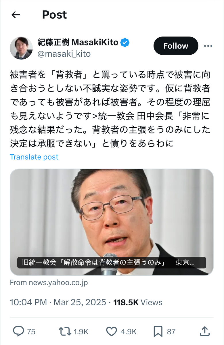 いや、その後も統一協会サイドは、何の反省も謝罪も無く、記者会見等で、反オープンレターズ「呉座神聖十字軍」さながらの「絶対正義」の「無謬神話」を露わに、「被害者非難」を繰り返しておりました。