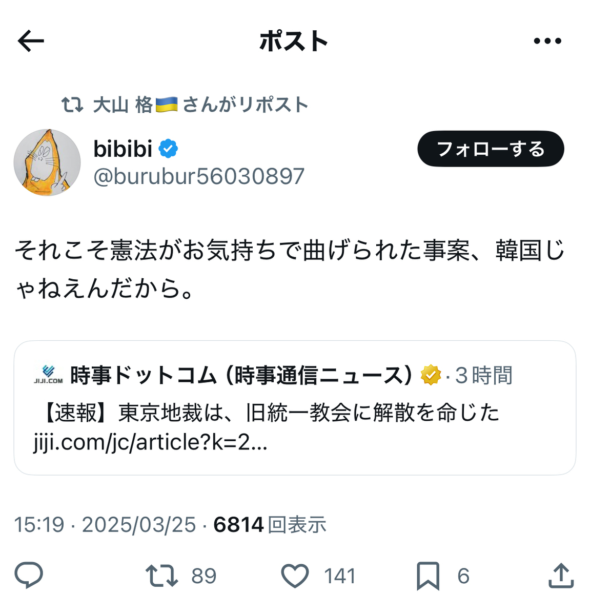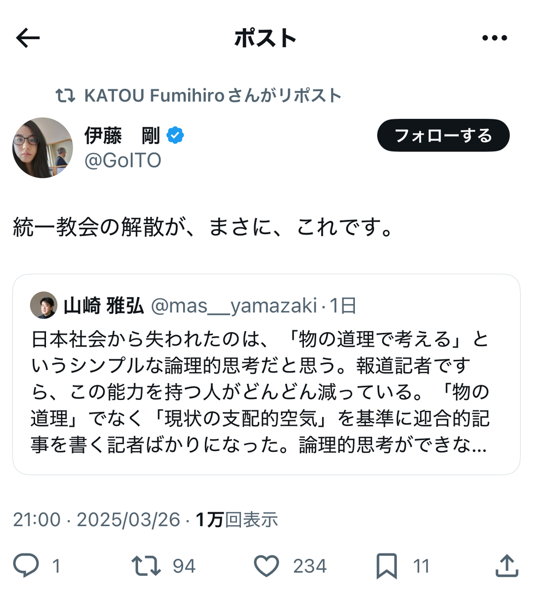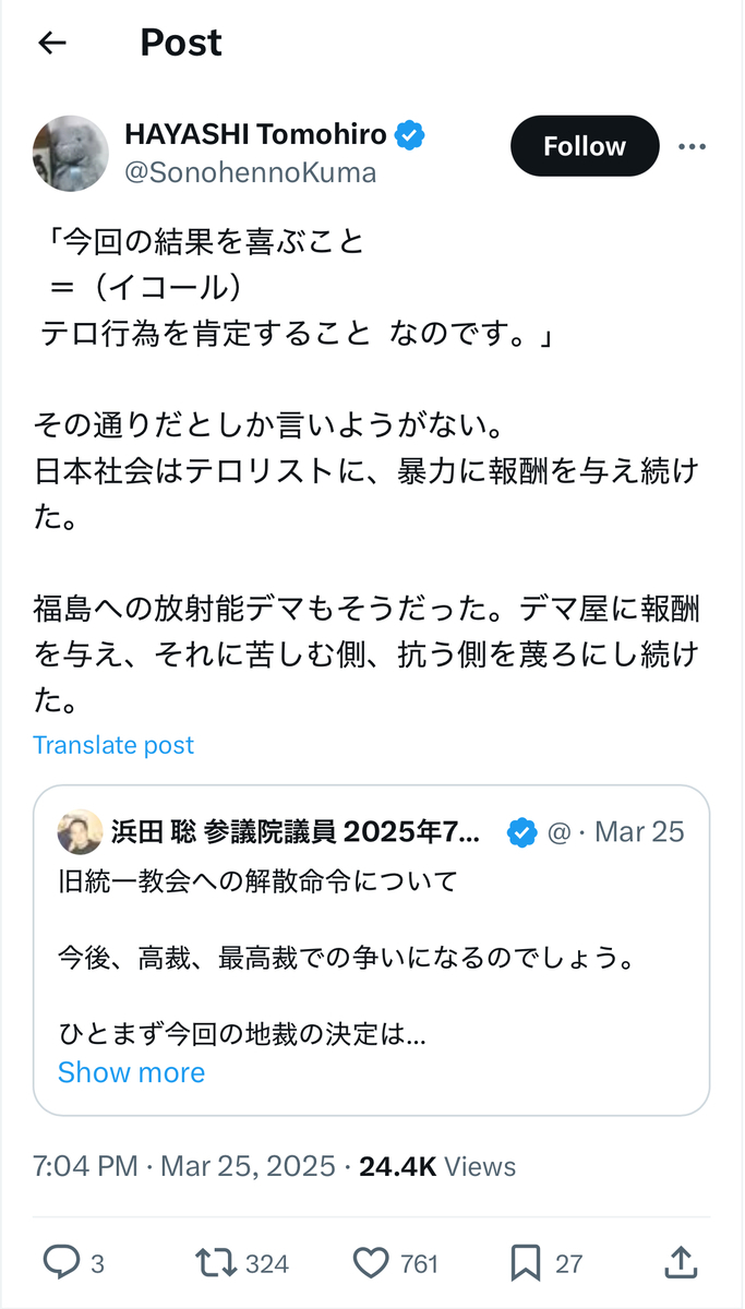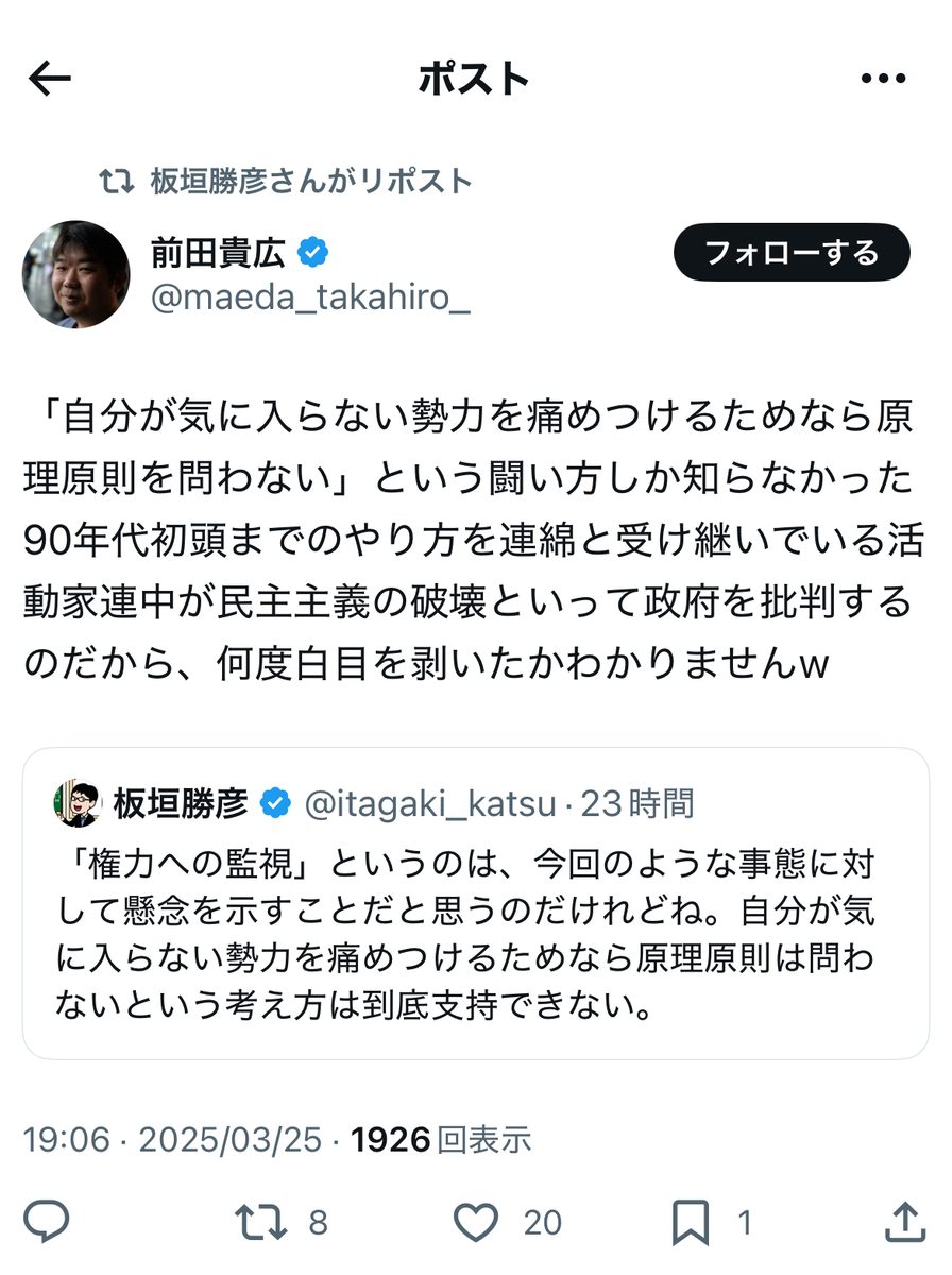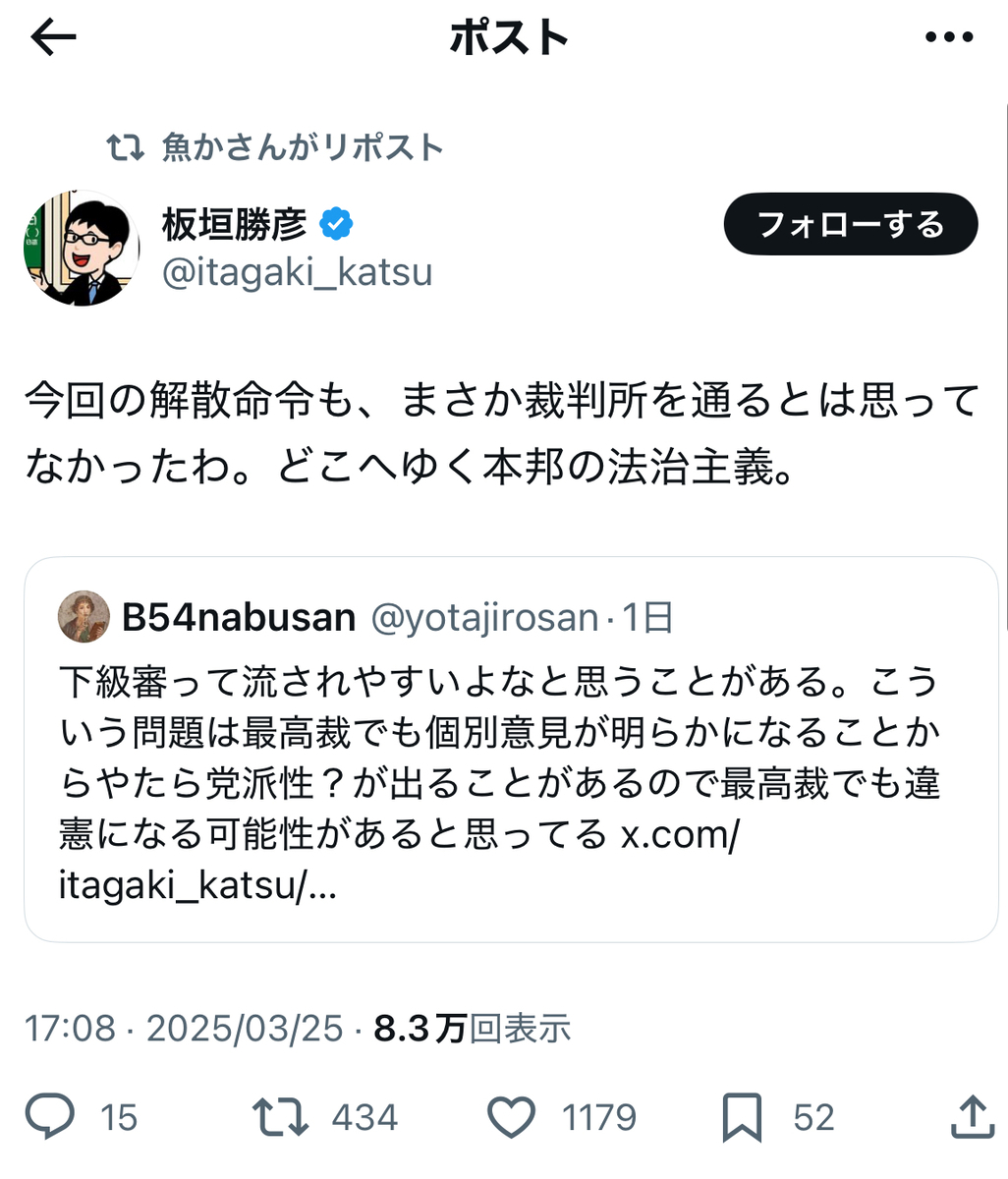 その反オープンレターズのお歴々の間でも……案の定というか、伊藤剛、板垣勝彦、大山格氏らを始めとして、教団への解散命令には猛反発が広がっている模様です。