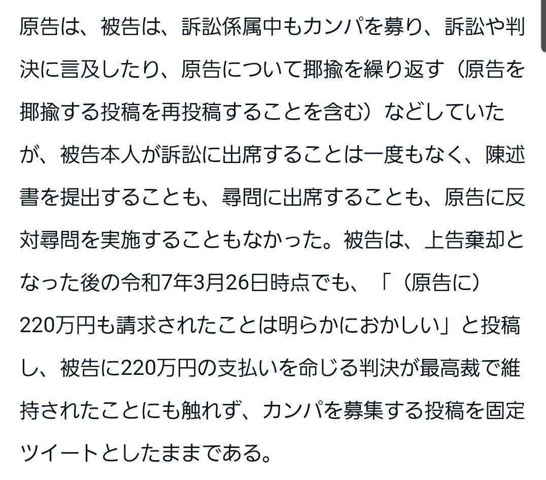 まさかとは思いますが、最初から裁判に勝ち目が無いからと、事実上「勝負」を捨てて、賠償金目当てのカンパ大作戦のキャンペーンを少しでも続けたかったのか。
