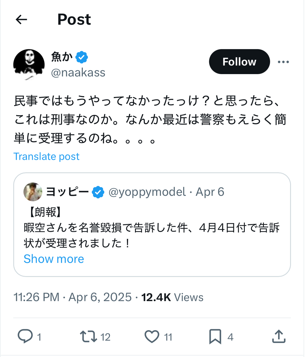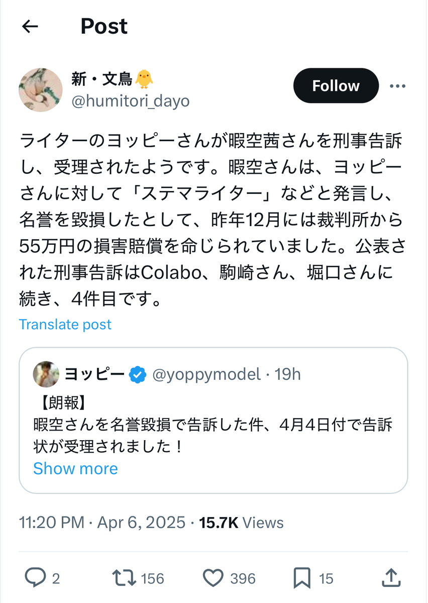余談ながら、最近の尊師は……対Colabo訴訟の14連敗に続いて、検察から「起訴」されていたのは冷厳たる事実であり、法廷に立つのは100%確実となったようです。