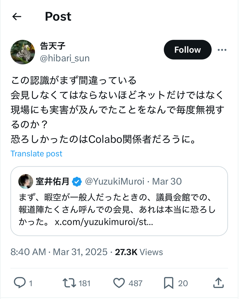 上記の「暇空茜」の請求を東京地裁棄却 Colabo仁藤夢乃代表への差別意識を認定 | 週刊金曜日オンラインから。