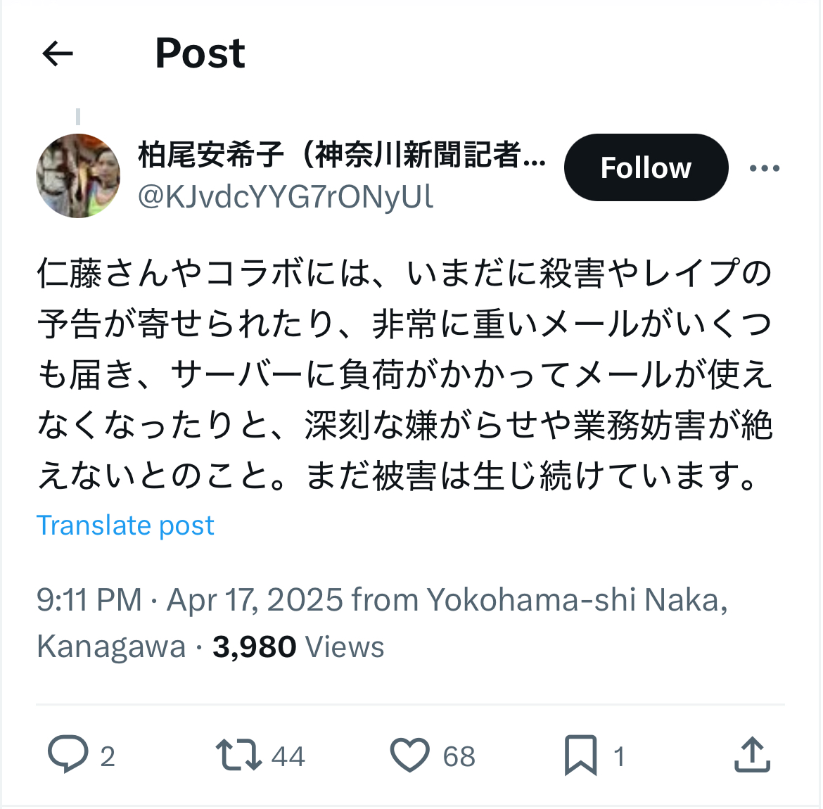 余談ながら、最近の尊師は……対Colabo訴訟15連敗に続いて、名誉毀損による「起訴」(在宅起訴)の事実も、朝日新聞以外で大々的に報じられるなど、話題に事欠きません。