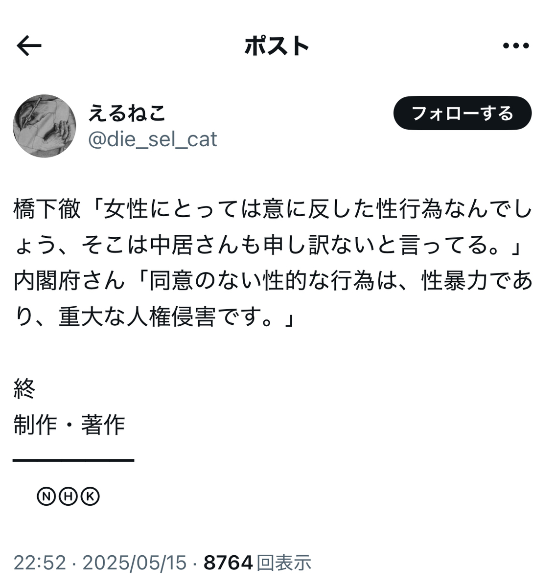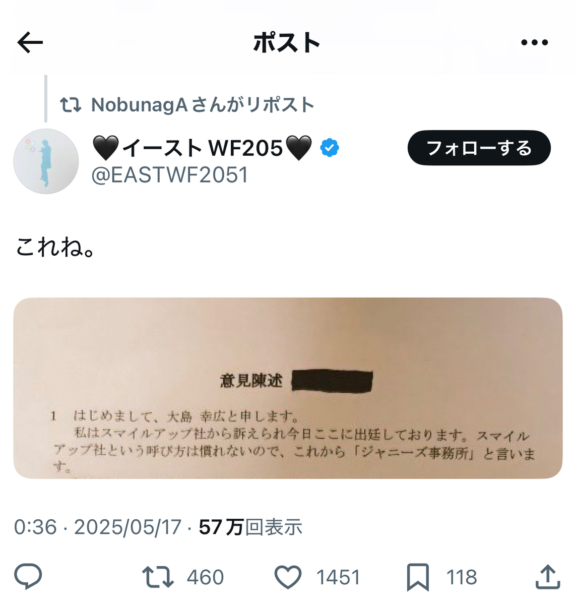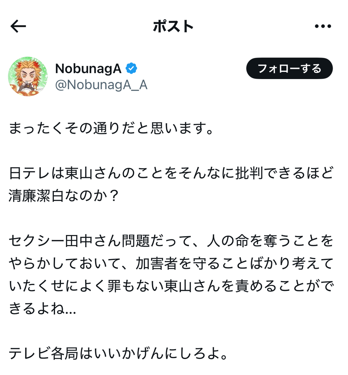例によって例の如く、炎上柱🔥は……というか、最近は嵐教の信者たちと松潤ファンからの「いいね」ラッシュでハイになる余り、ジャニー喜多川の性加害事件の被害者の方々への「被害者非難」にも、やっと飽きて来たような気配もあります。