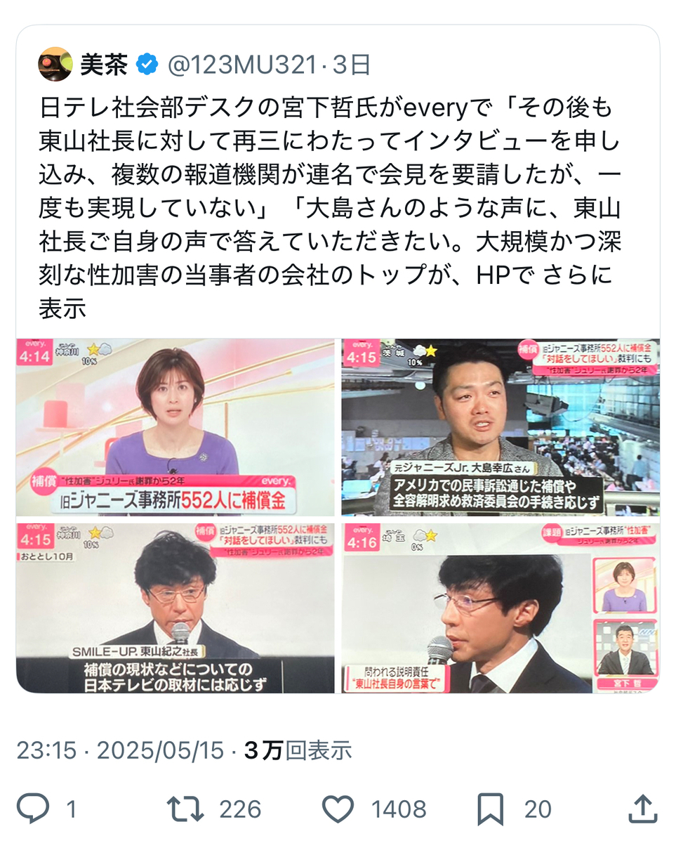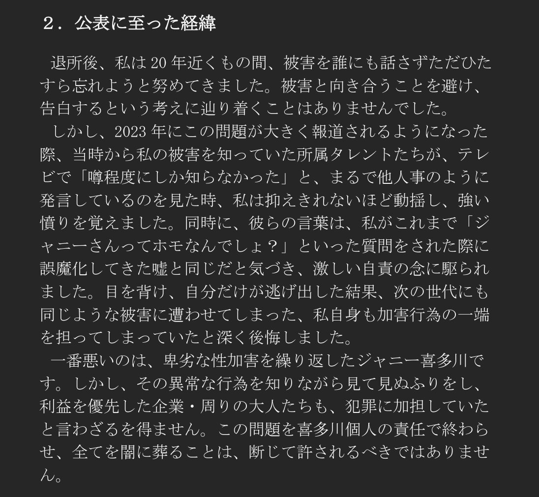 ジャニー喜多川による性加害については、『週刊文春』が実質勝訴した民事訴訟(※2004年2月、最高裁で高裁判決が確定)にて「真実」と認定されております。