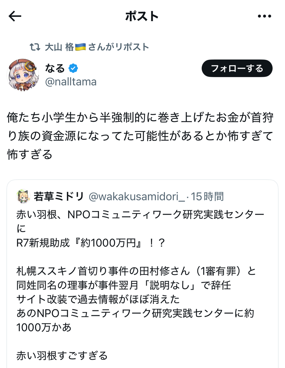 「俺たち小学生から半強制的に巻き上げたお金が首狩り族の資金源になってた可能性があるとか怖すぎて怖すぎる」