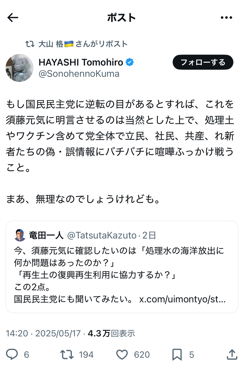 念のためにお断りしておきますが、自分は国民民主党の支持者でも関係者でもありません。
