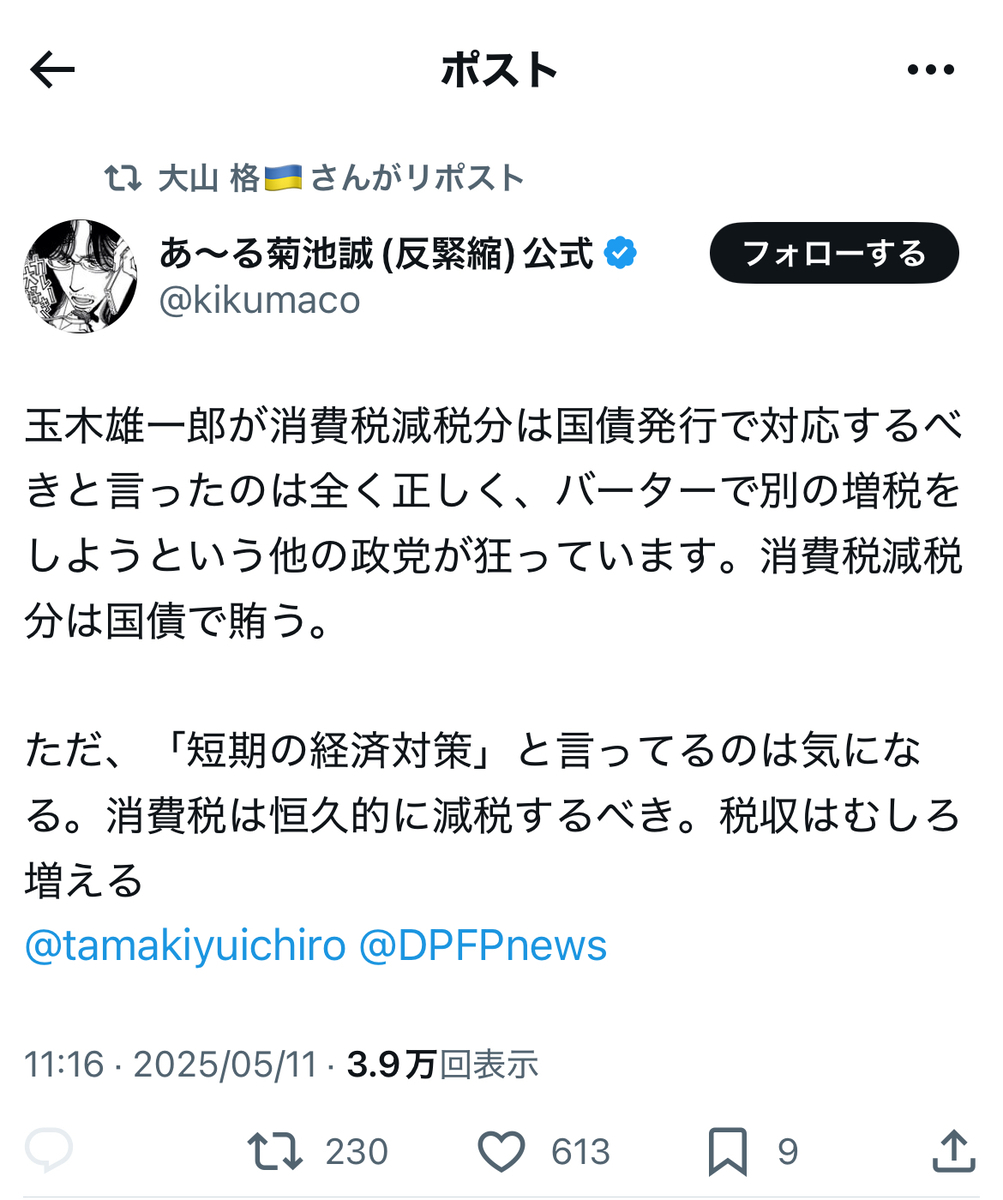 個人的には「ザイム真理教」などと、国民民主党の幹部が公的な場にて冗談でも皮肉でも無く、本気で戯言を抜かしていた時点で、反ワク云々の妄言をブチかまするような要注意人物を出して来る展開等は、ある意味、想定の範囲内でしたが……!?