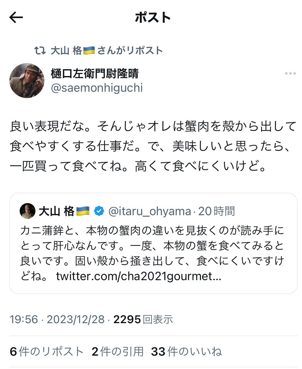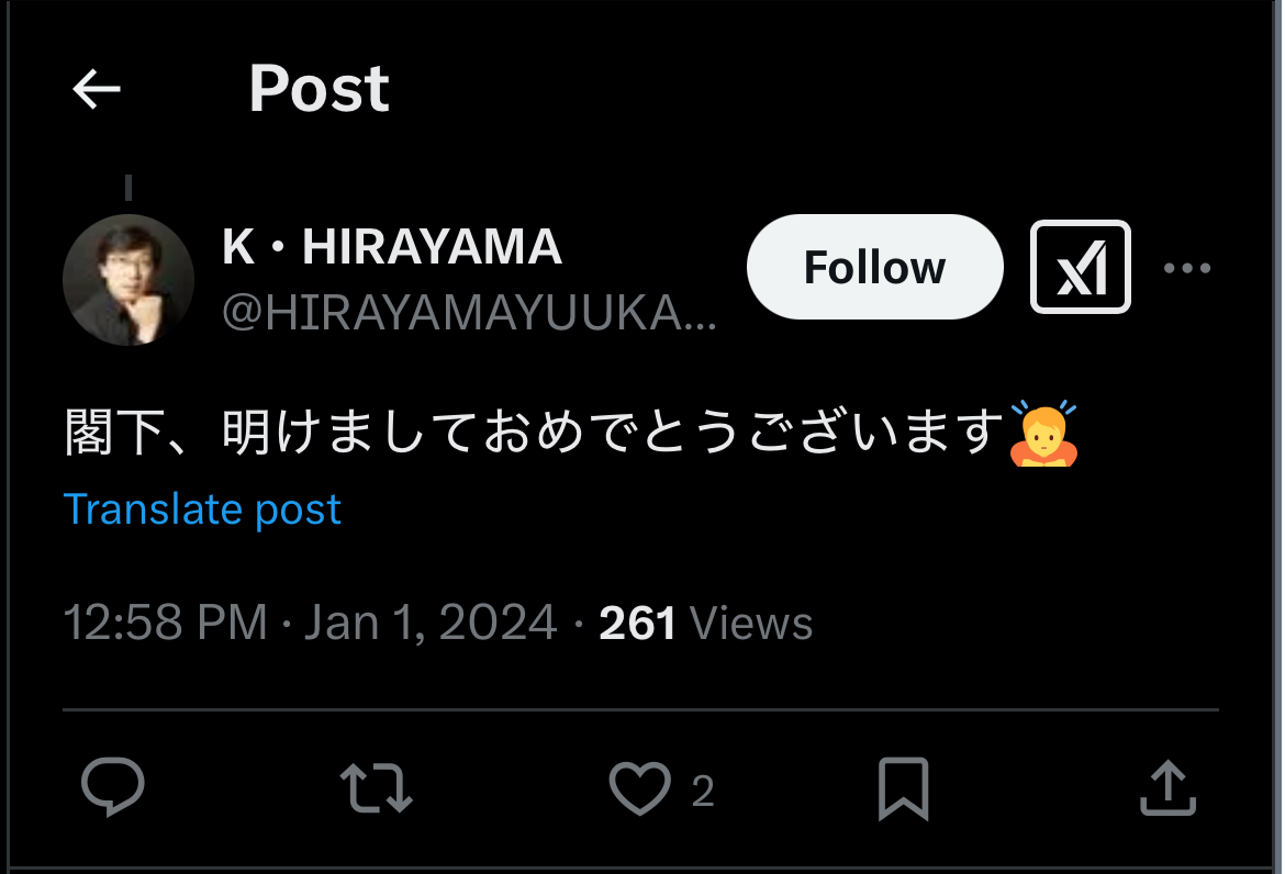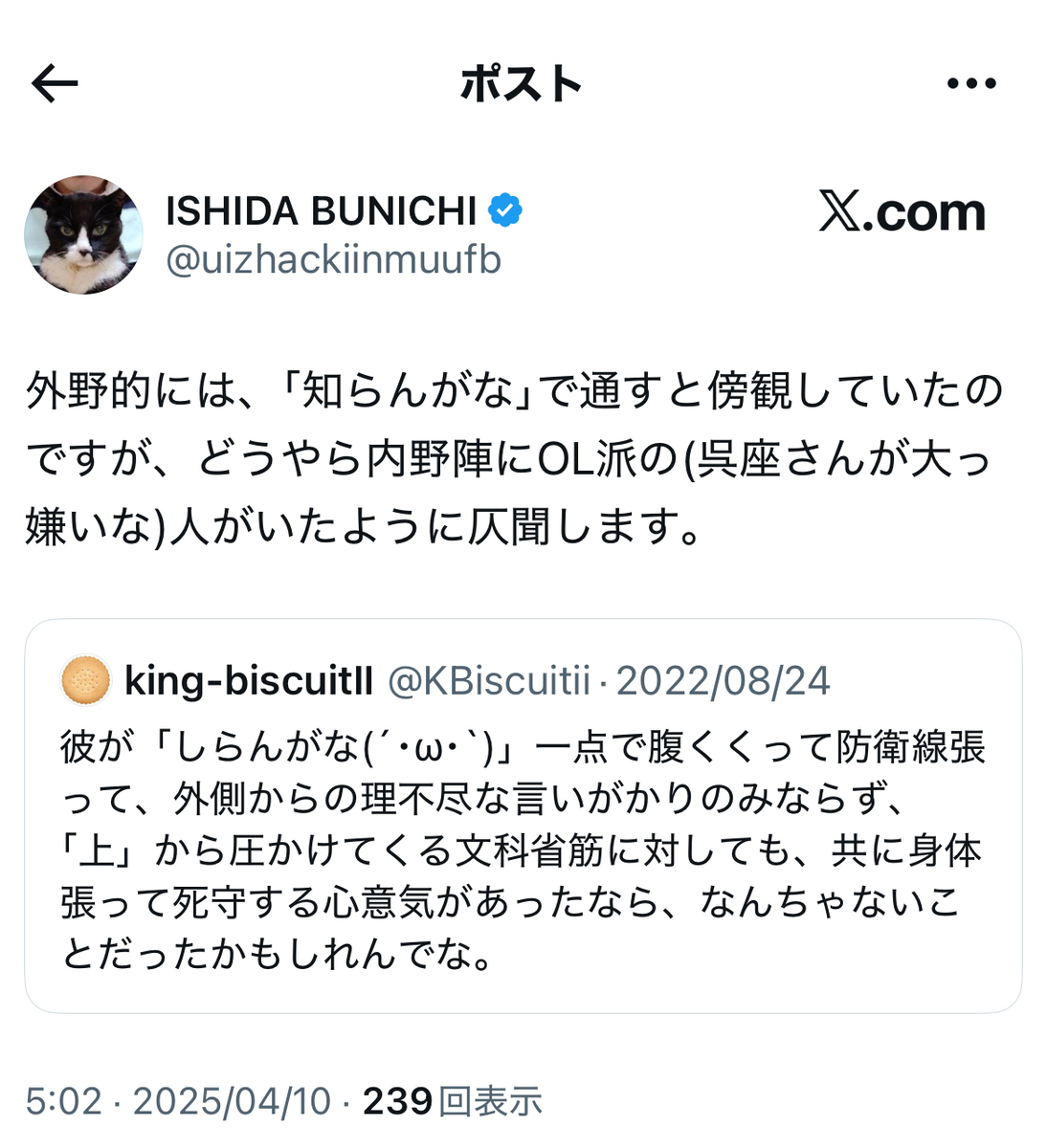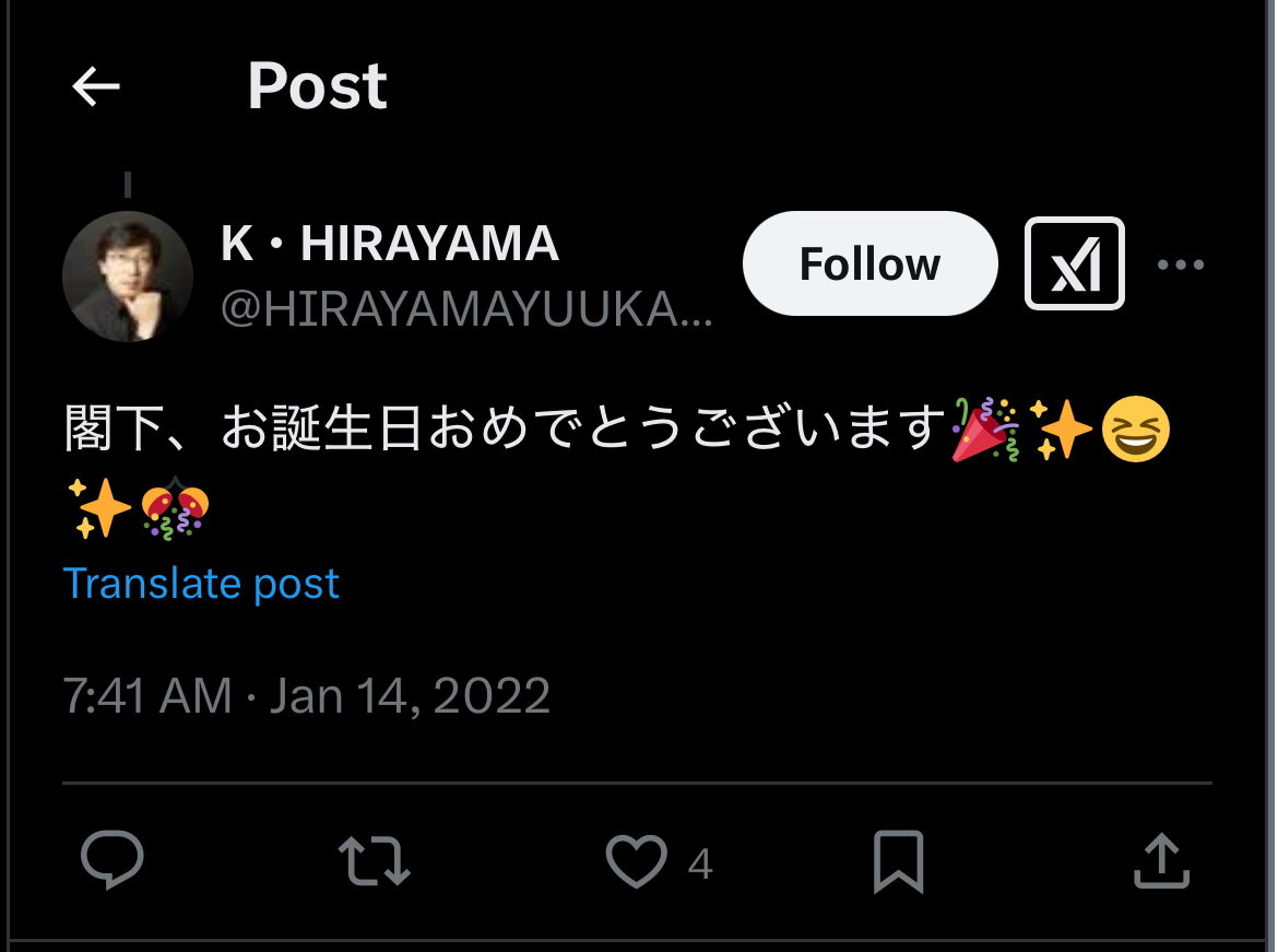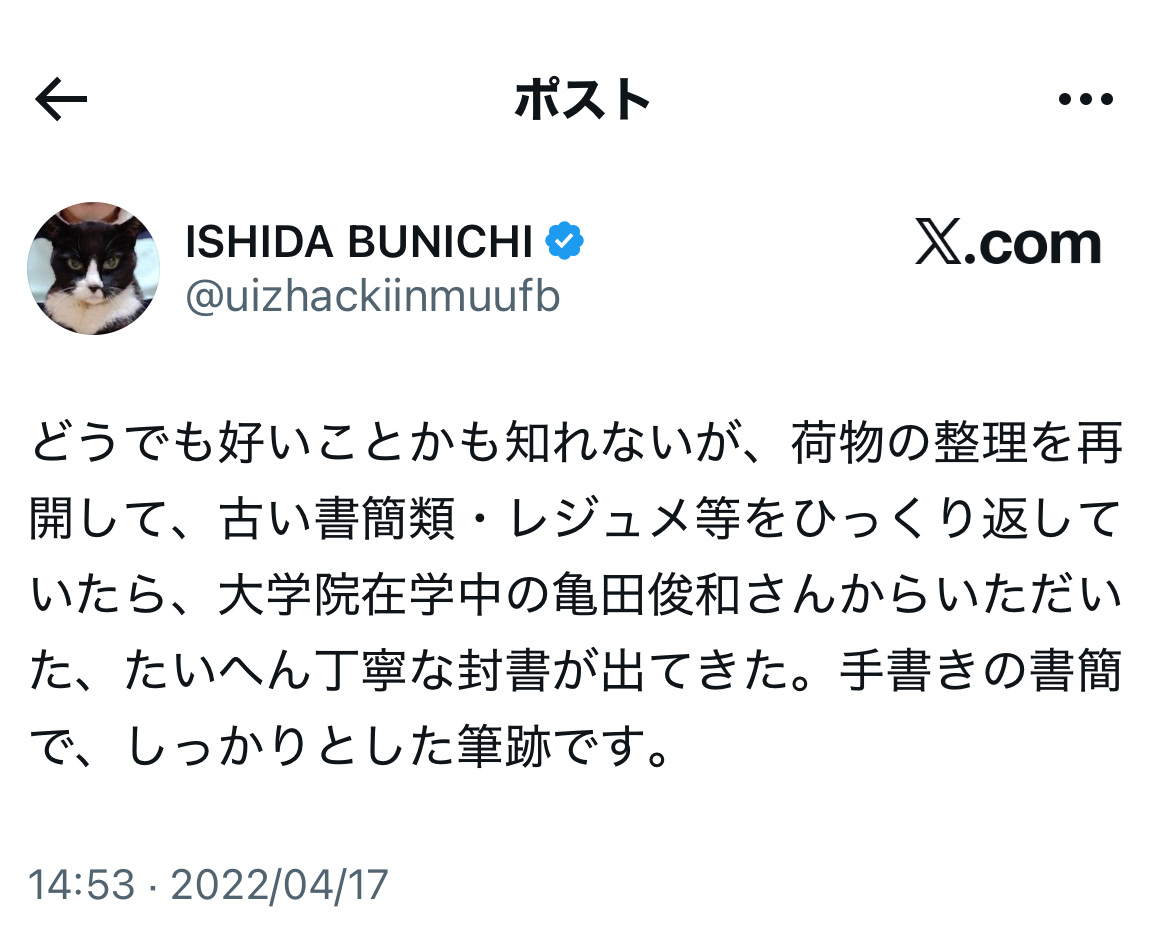 上記のエントリ-「それは存じ上げませんでした」にも端的に表れていますが、ご自身に関するXの投稿も、欠かさずチェックしていおられるようです。