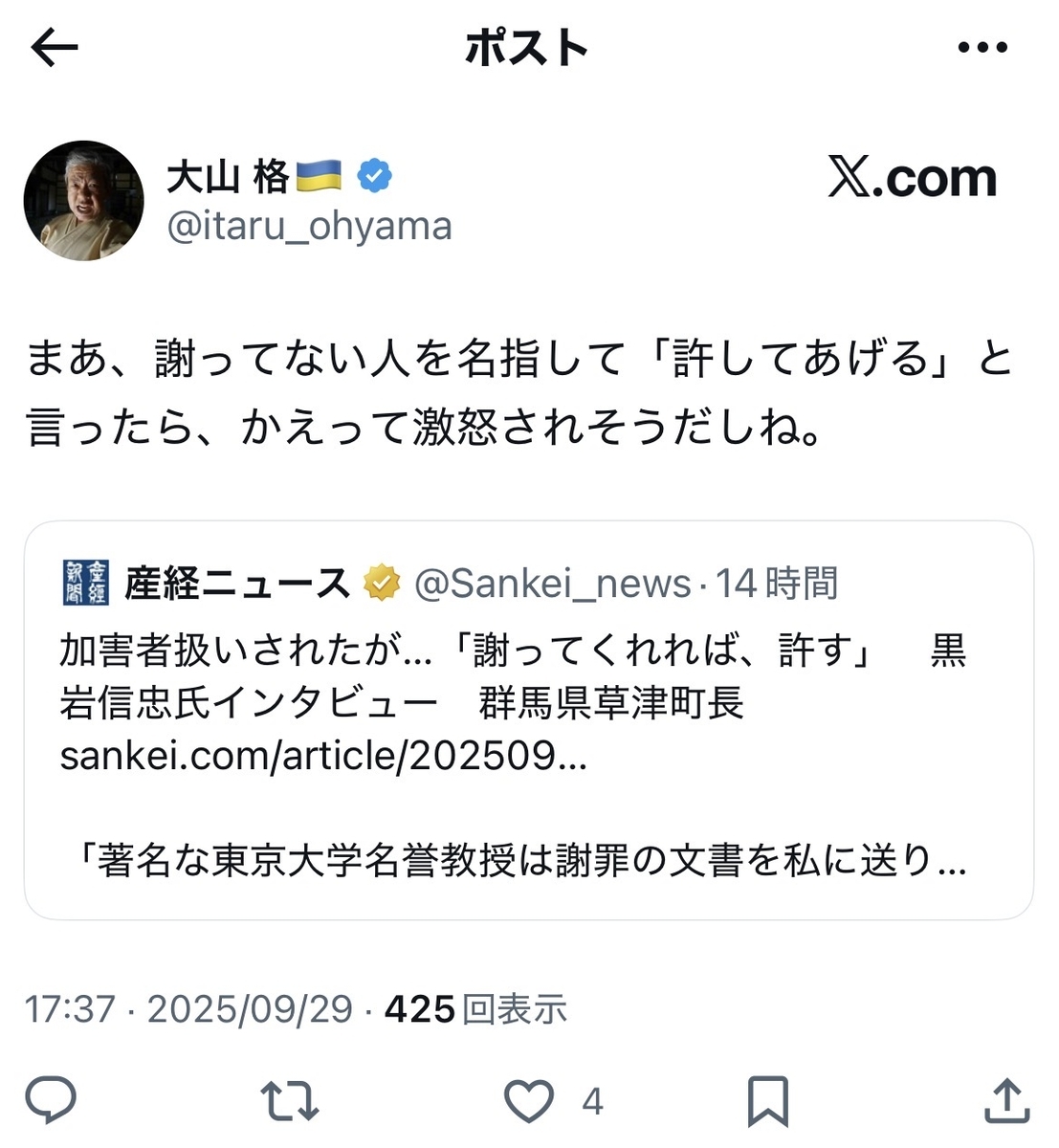 不謹慎な言い方で恐縮ながら、大山氏も鏡に向かってブーメランを……ゲフンゲフン、失礼致しました。