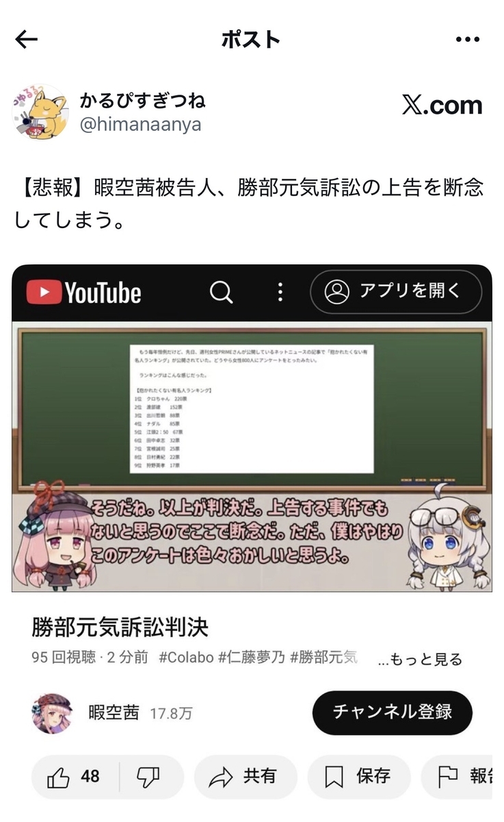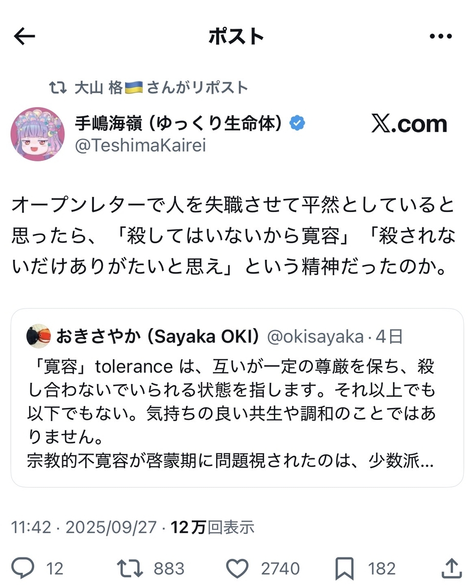 ※以下のポストのスクショなどは、ご参考なまでに掲載したものであり、自分はこれらのご見解に賛同している訳ではありません。宜しくお願い致します。
