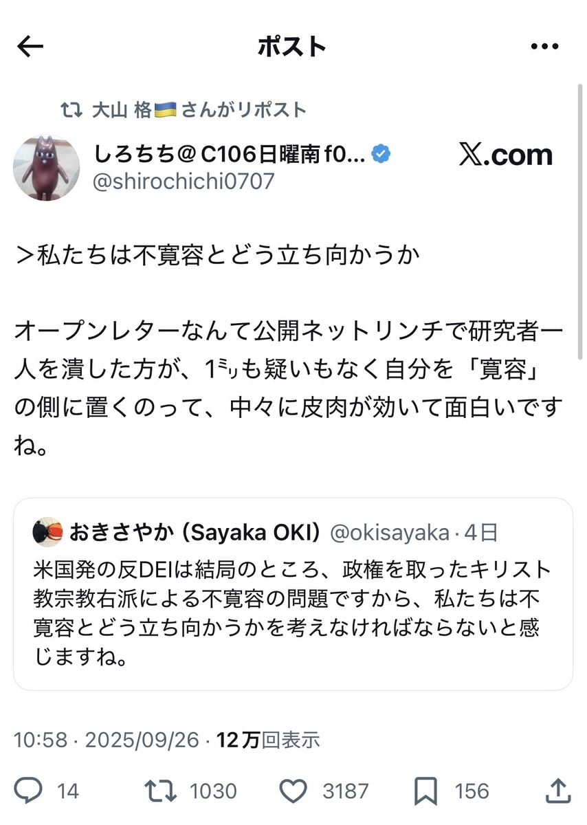 誤解されると困りますが、自分は学術会議の関係者でも無ければ、支持者でもありません。個人的には、学術会議にも想うところはありますが……誰かさんたちによるDV加害者ばりの執拗な難癖には、違和感を覚えるばかりです。