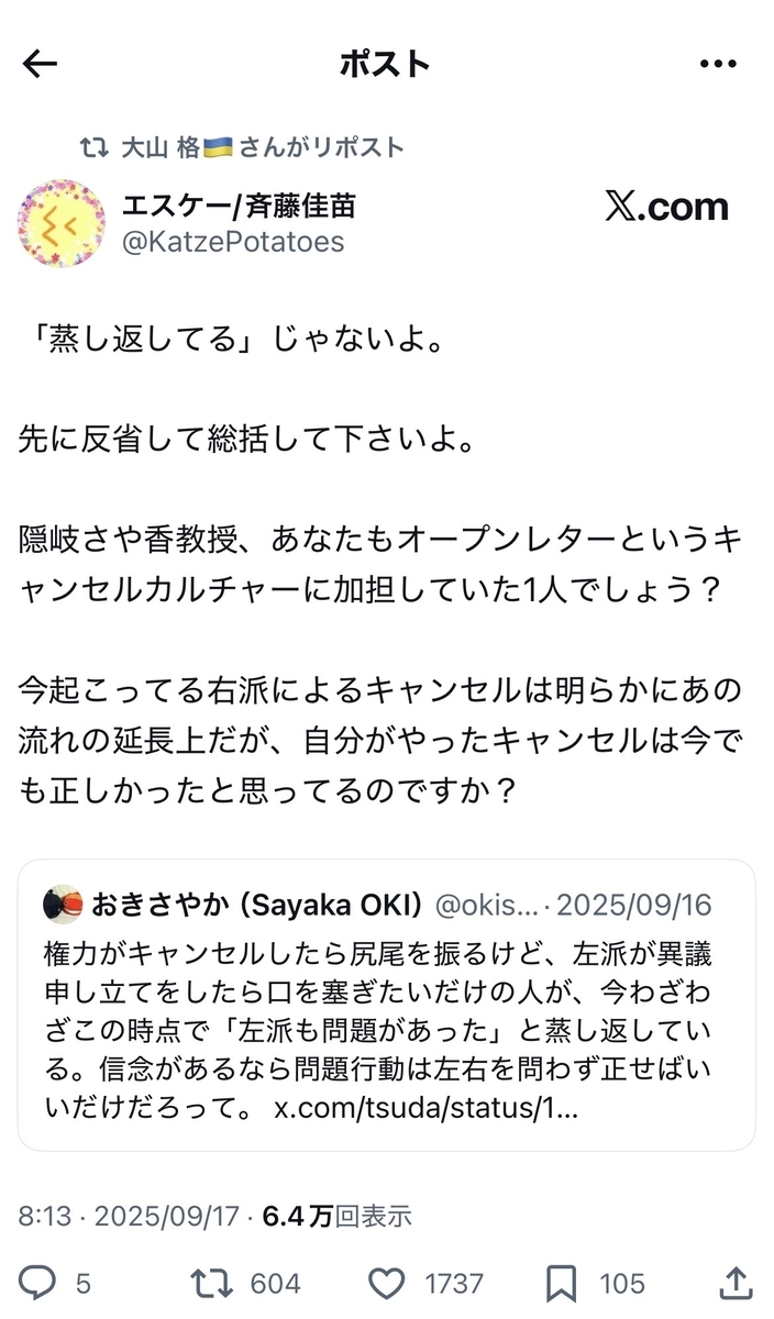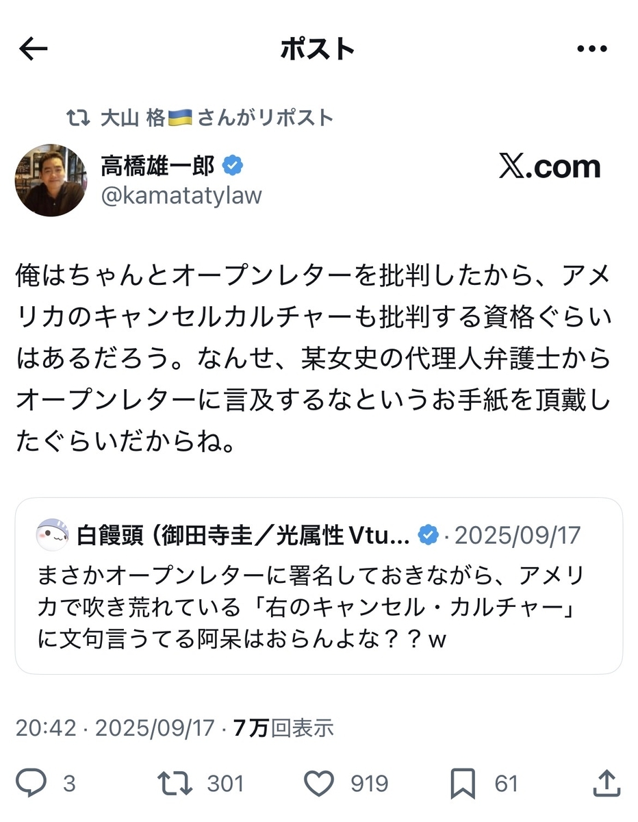 「オープンレターは、キャンセルカルチャーでは無い」