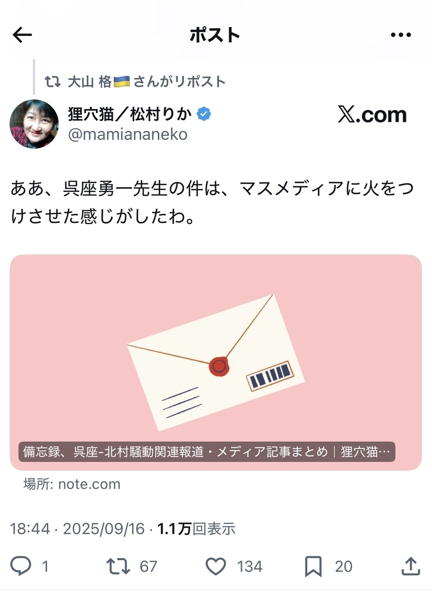 歴史系インフルエンサーの先駆者でもあった亀田センセイや呉座勇一氏が、(実質的に)退場した後の呉座・日本史界隈にて、その後釜となっている感もある歴史系ライターの大山格氏ですが……ここに来て、またまたまたオープンレター関係者へのド派手な英雄伝説をご披露しておりました。