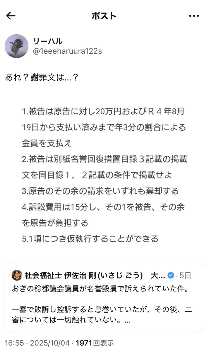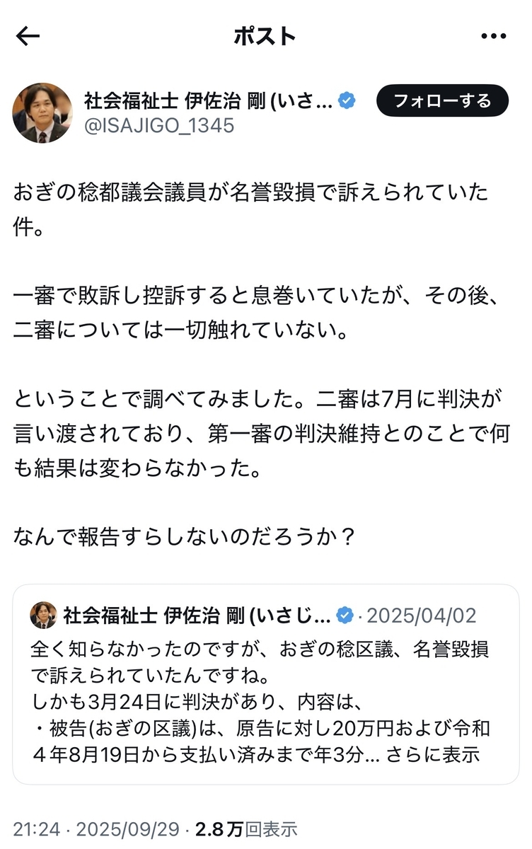言うまでもなく、反オープンレターズの小菅信子氏も違法な懲戒請求で神原元弁護士に実質敗訴しており、東京工芸大学芸術学部マンガ学科教授の伊藤剛氏の高弟で、青識氏ご本人とリアルでも親しいおぎの稔氏(都議・都民ファーストの会)もまた名誉毀損訴訟にて、これまた二連敗しております。