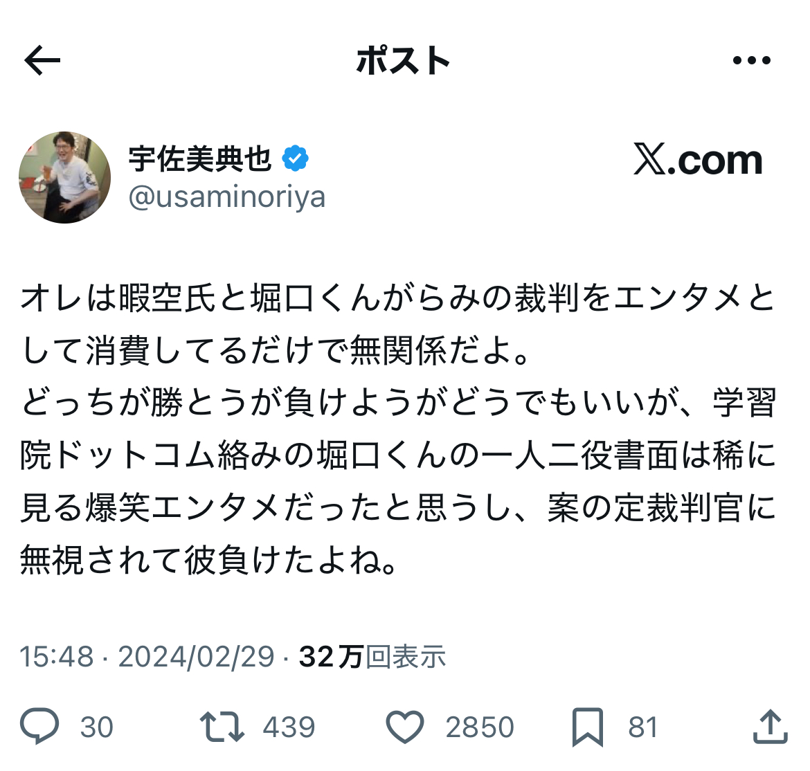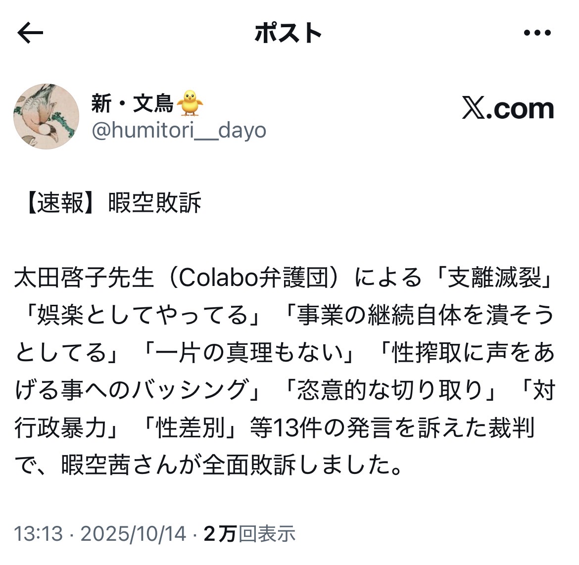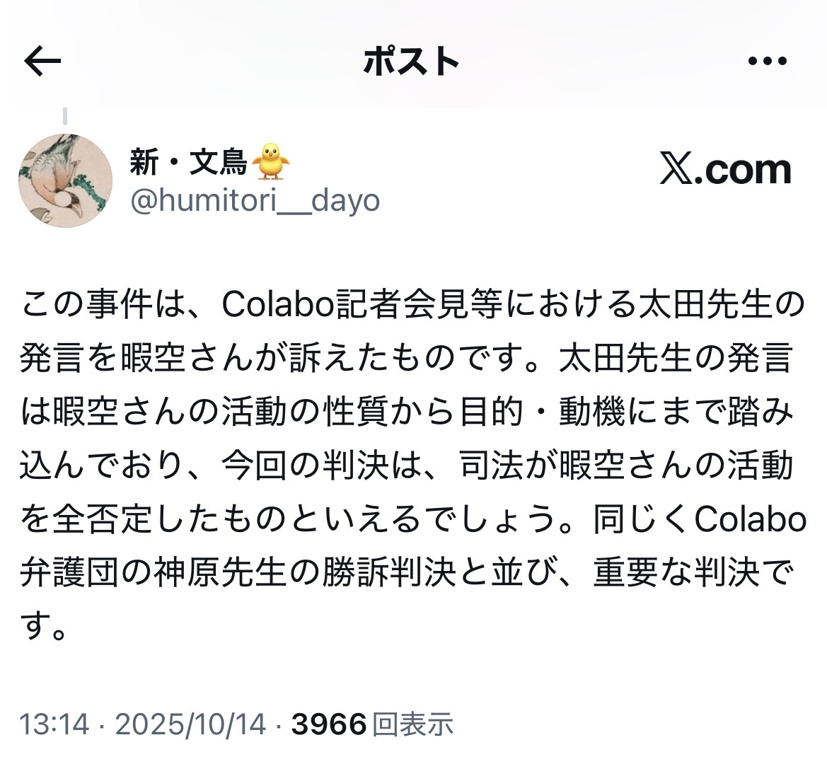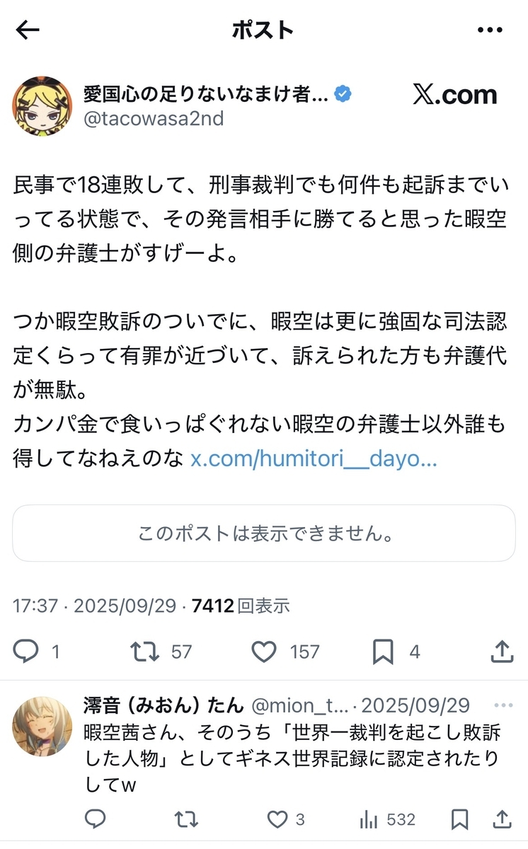 余談ながら、尊師は……対colabo訴訟で18連敗するなど、ある意味、プロ野球記録に並ぶ金字塔を打ち立てた模様です。