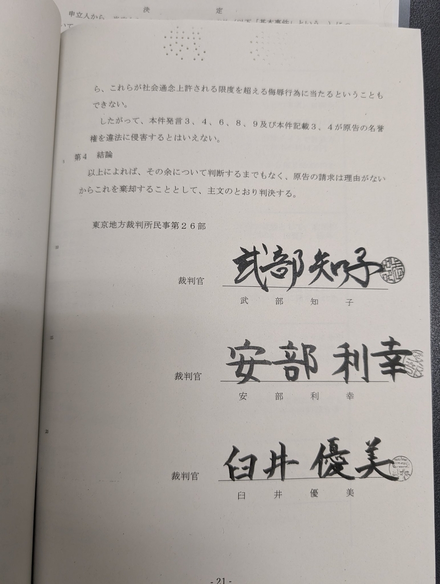 尚、捕捉すると、呉座氏の対日本歴史学協会訴訟の一審判決(控訴審も、呉座氏サイドの全面敗訴)*1によると、上記の『懲戒審査事由説明書』は「証拠」として一応採用されたらしいものの、