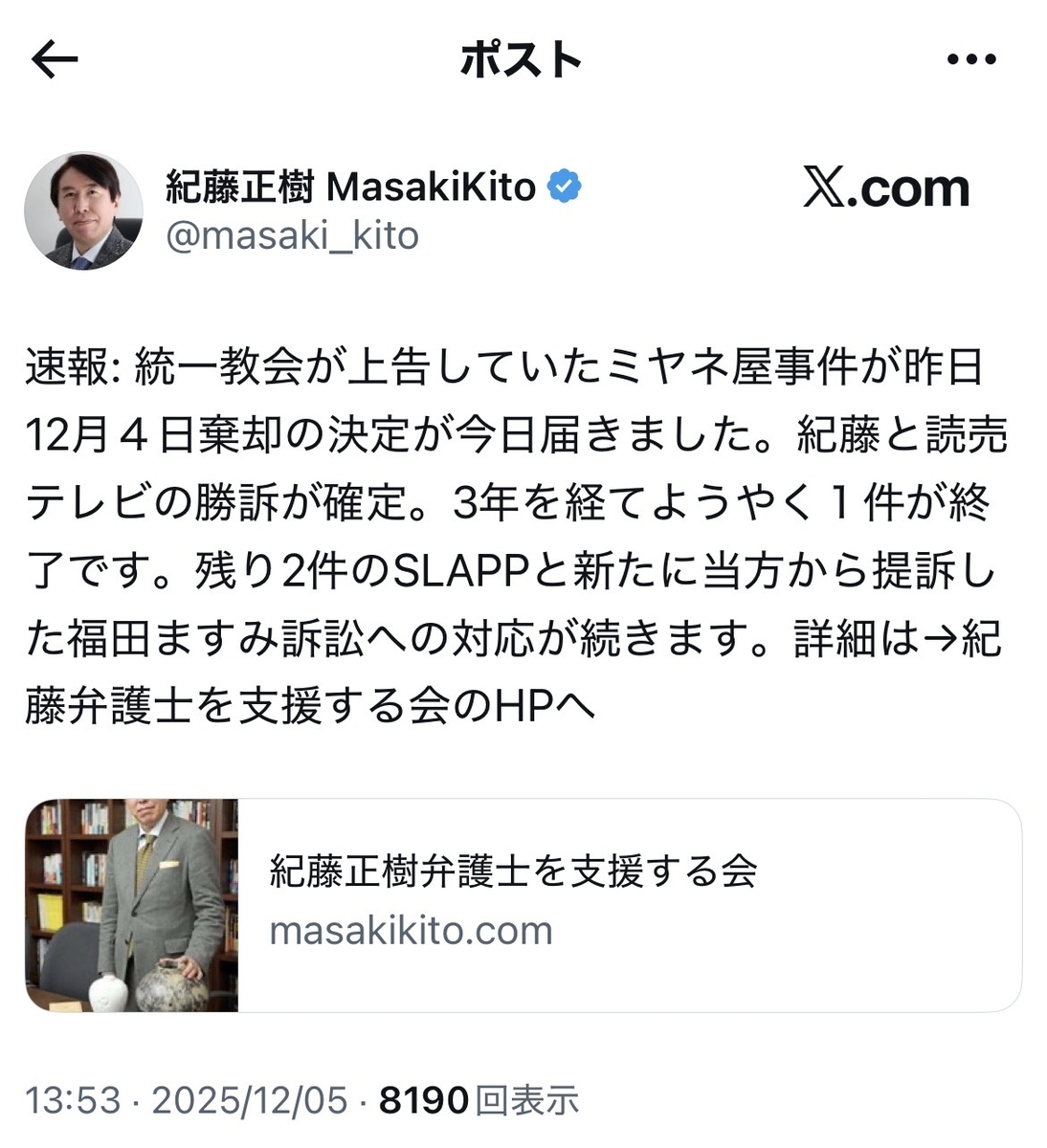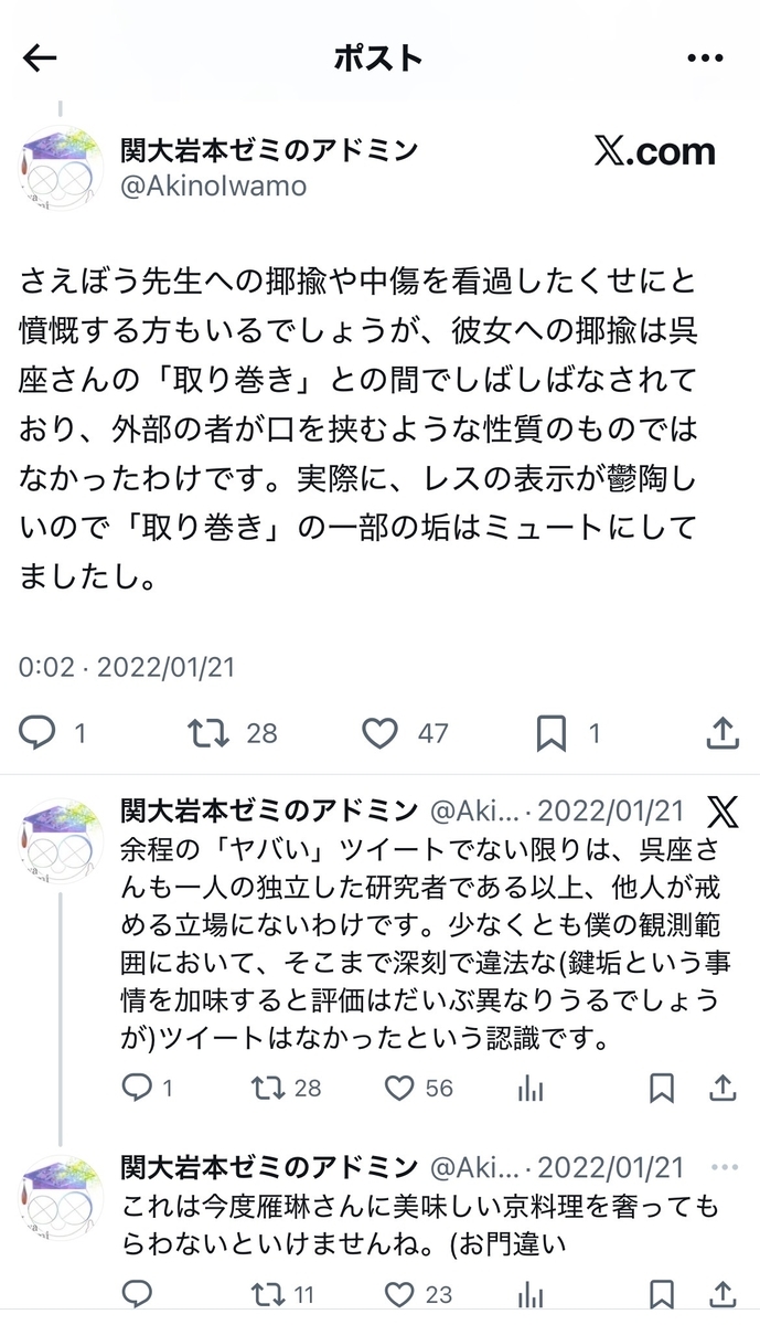 やはり、反オープンレターズというか、呉座・日本史界隈には……2025年11月9日の「呉座勇一先生を支える会」(@Goza_Support)による一連の法廷闘争の「敗北宣言」というか、「玉音放送」のポストも効いたのでしょうか……!?