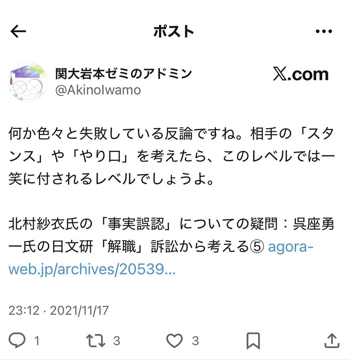 ●反オープンレターズの隠れた脇役(?)、関大・岩本明憲氏とは