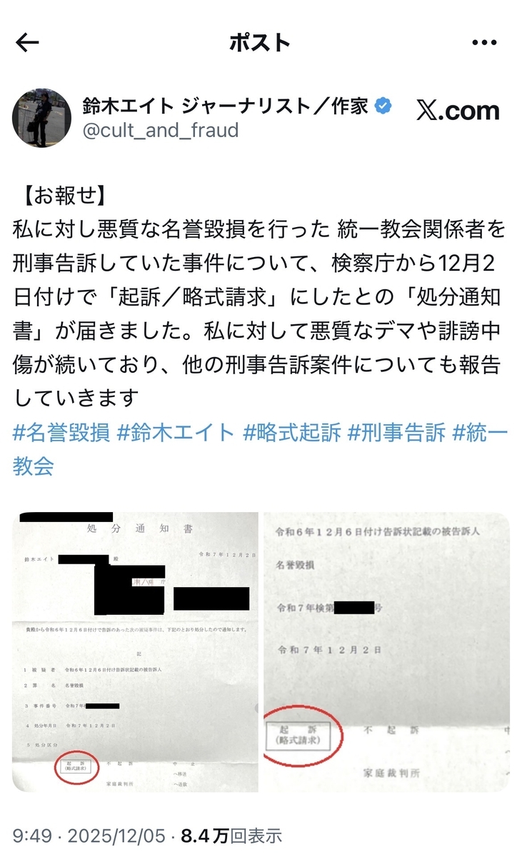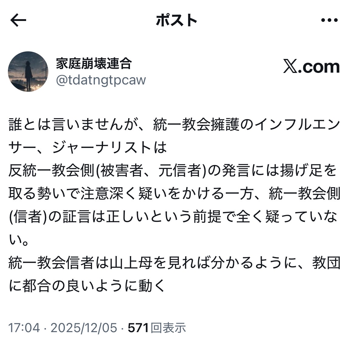 「誰とは言いませんが、統一教会擁護のインフルエンサー、ジャーナリストは